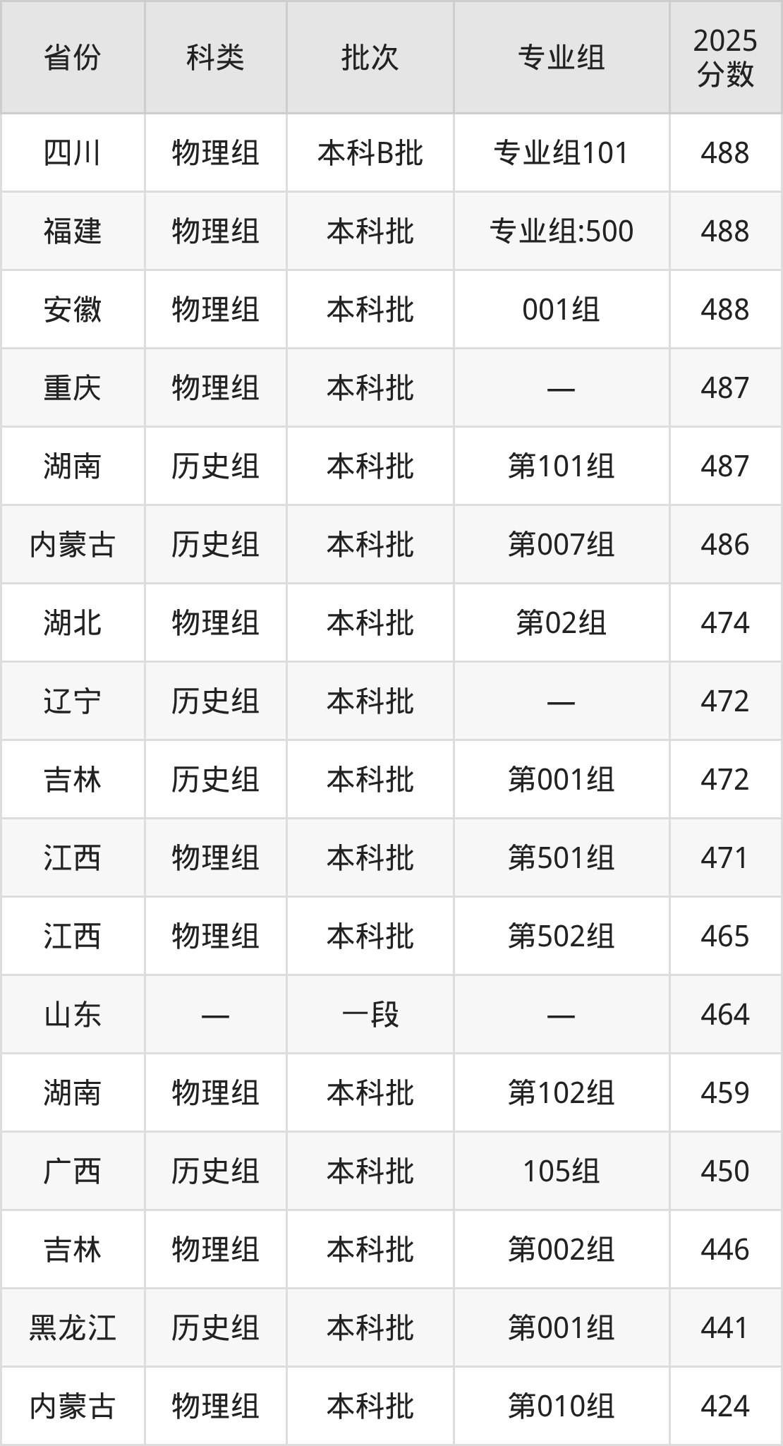 下面是普洱学院2025年在全国各省的录取分数线一览表,供参考: