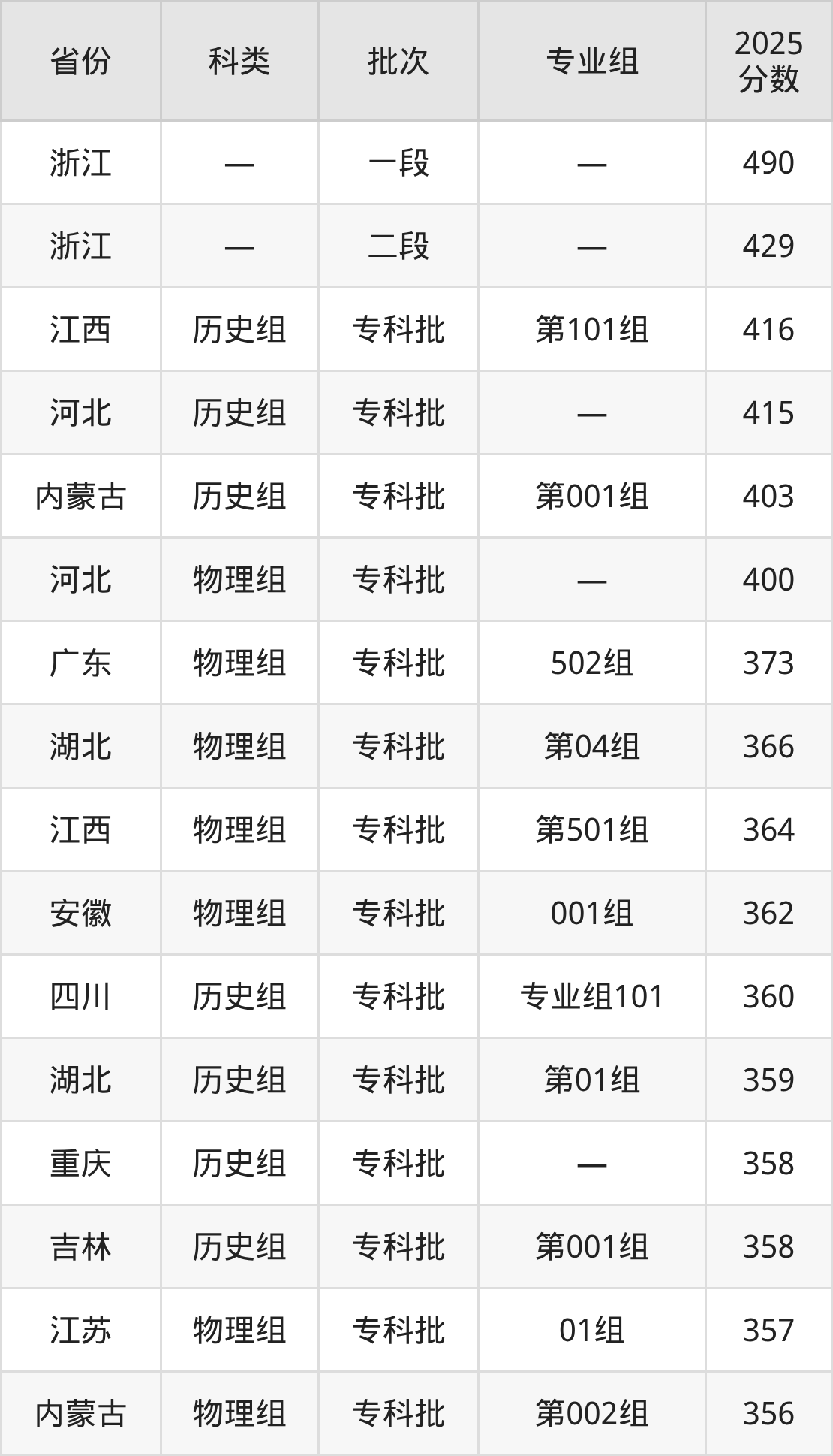 而浙江地区考生的分数门槛最高,2025年仙桃职业学院在浙江招生最低分为490分,考生至少要超一段线0分才有可能被录取。