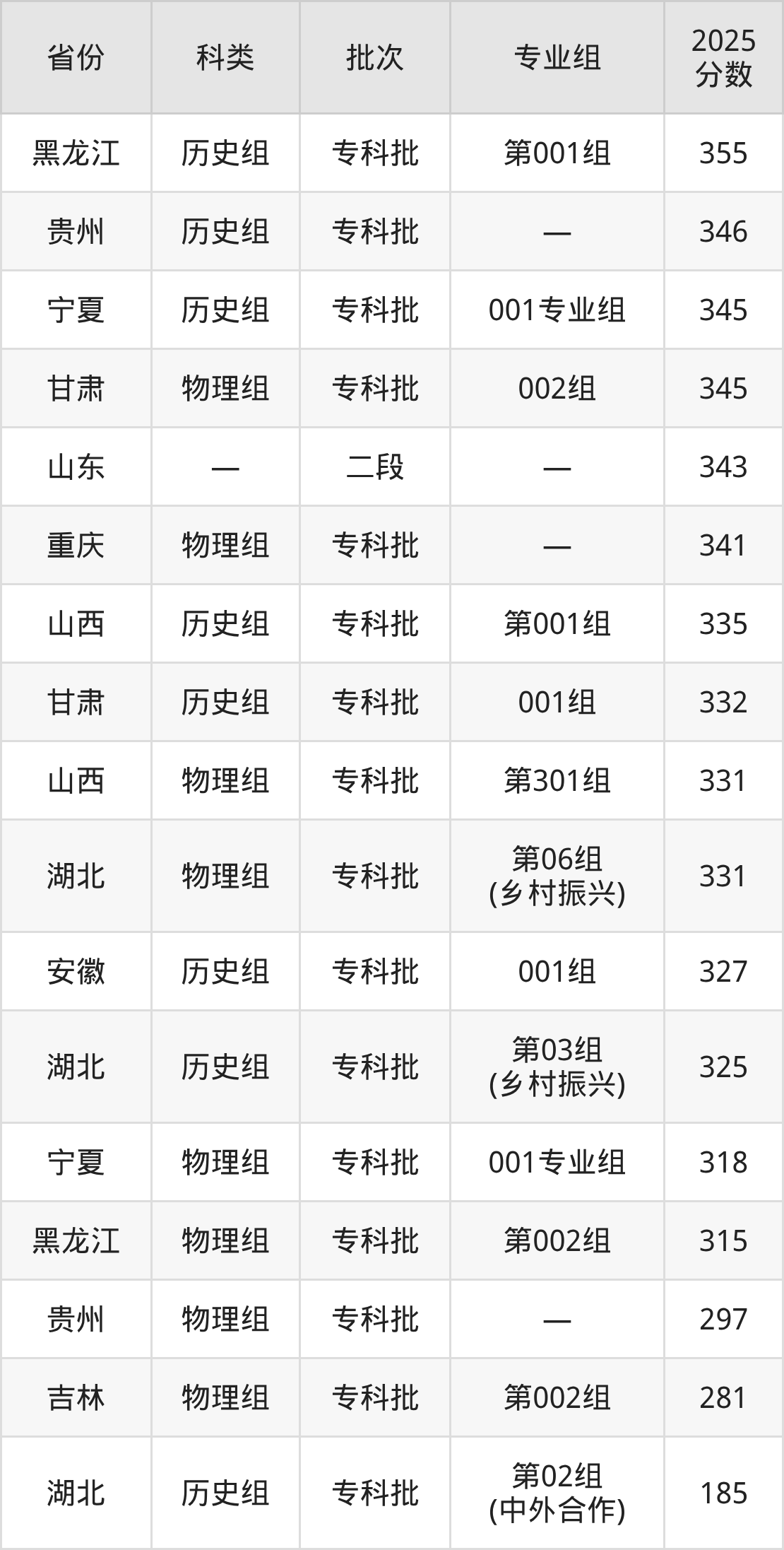 下面是仙桃职业学院2025年在全国各省的录取分数线一览表,供参考: