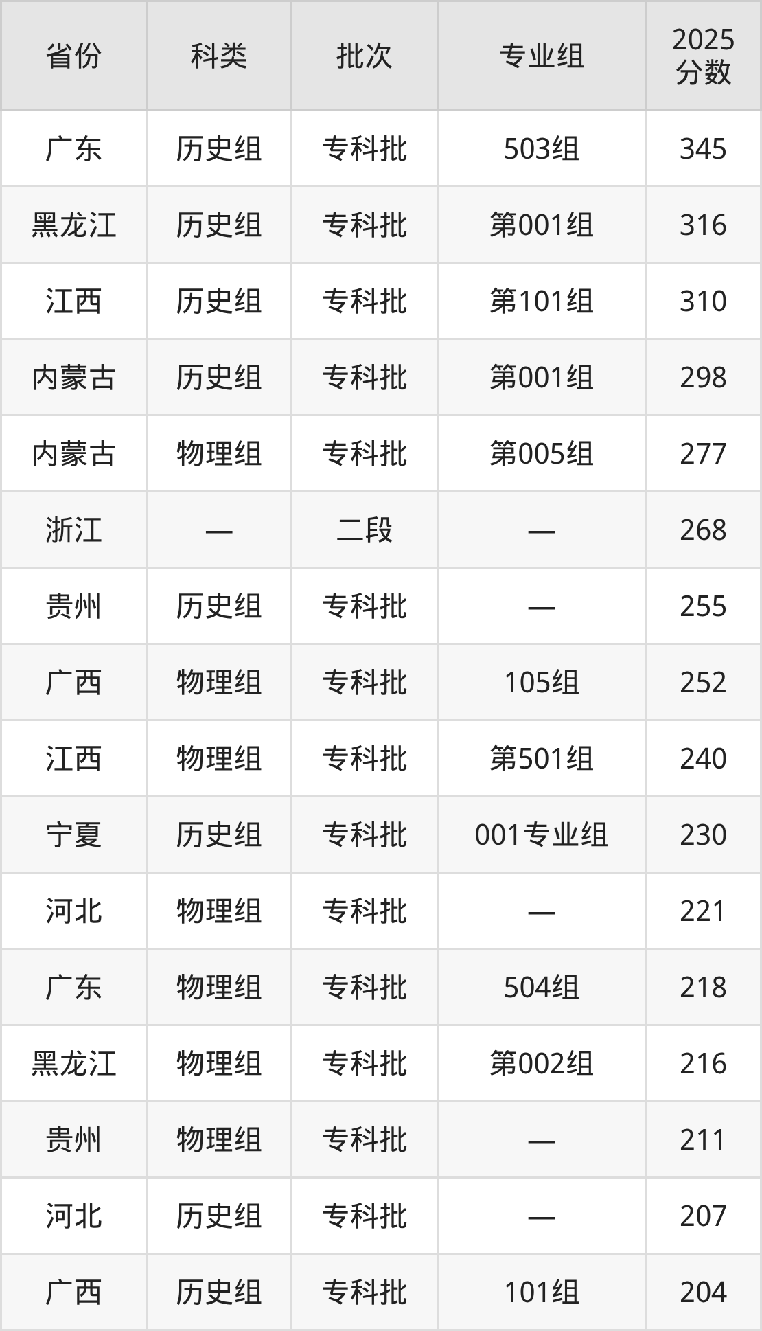 而广东地区历史组考生的分数门槛最高,2025年云南三鑫职业技术学院503组在广东招生最低分为345分,考生至少要超专科线130分才有可能被录取。