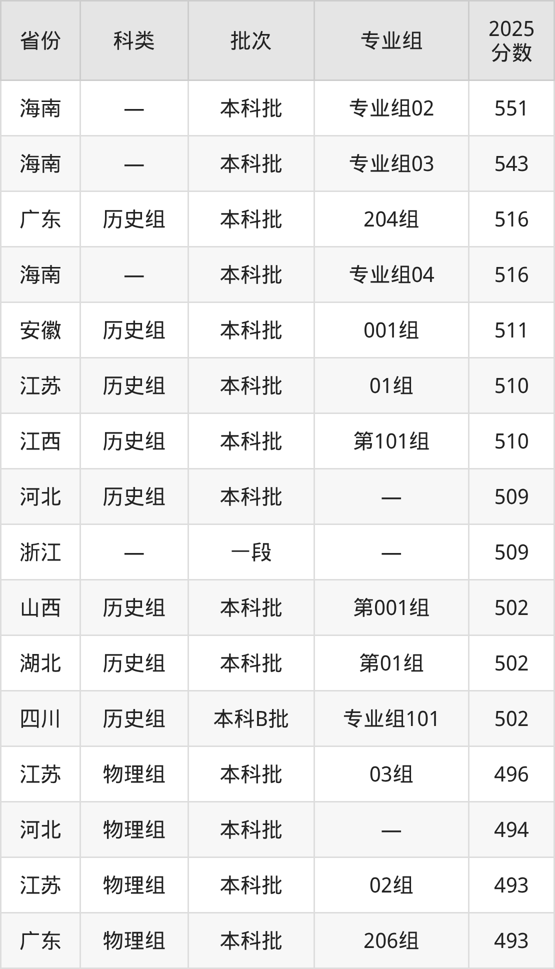 而海南地区考生的分数门槛最高,2025年南昌大学科学技术学院专业组02在海南招生最低分为551分,考生至少要超本科线71分才有可能被录取。