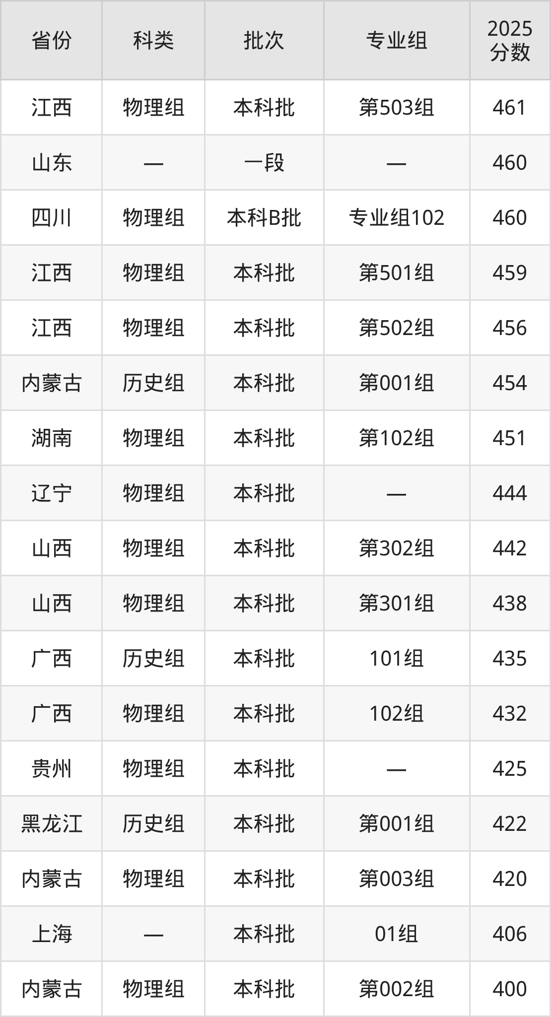 南昌大学科学技术学院2026年录取分数需在高招结束官方数据公布后更新,2026届有意向报考该校的同学,可以在填报志愿时参考南昌大学科学技术学院2025年录取分数线: