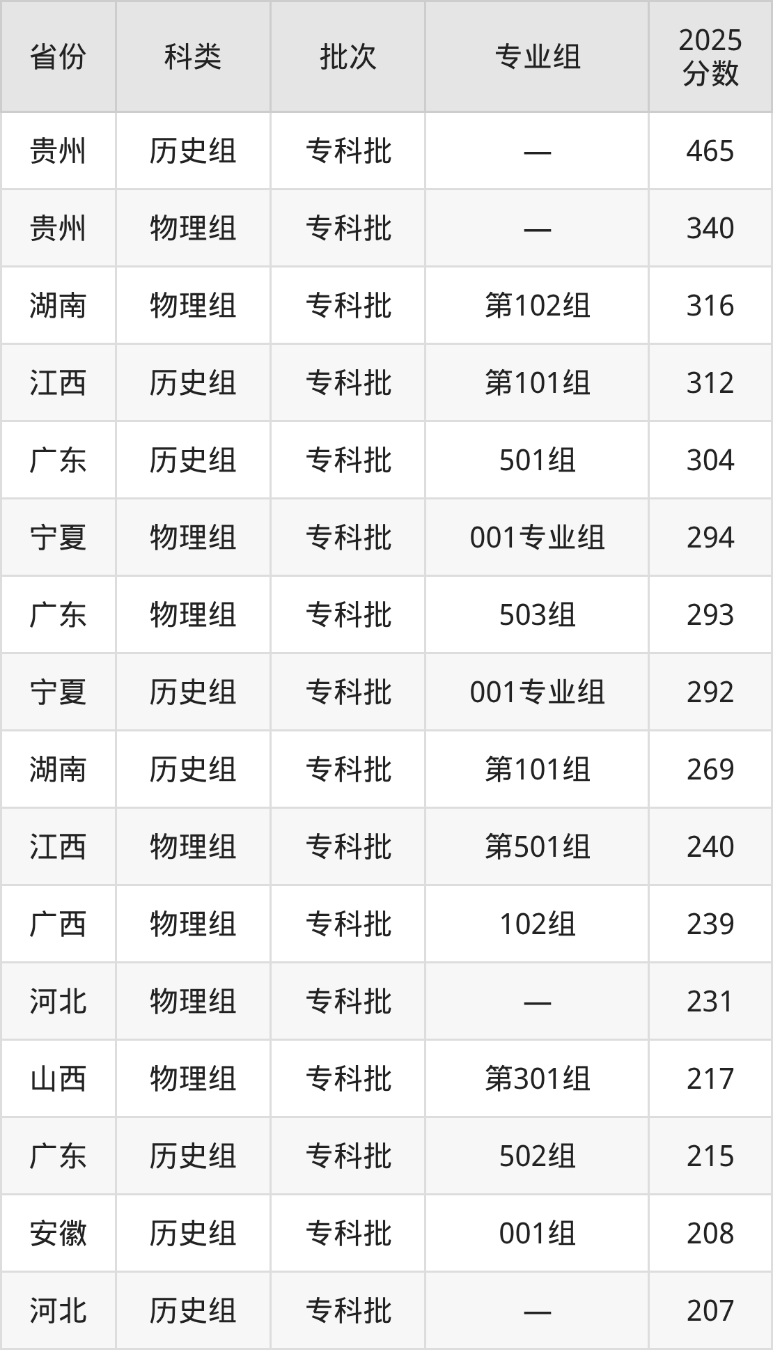 而贵州地区历史组考生的分数门槛最高,2025年广州华商职业学院在贵州招生最低分为465分,考生至少要超专科线285分才有可能被录取。