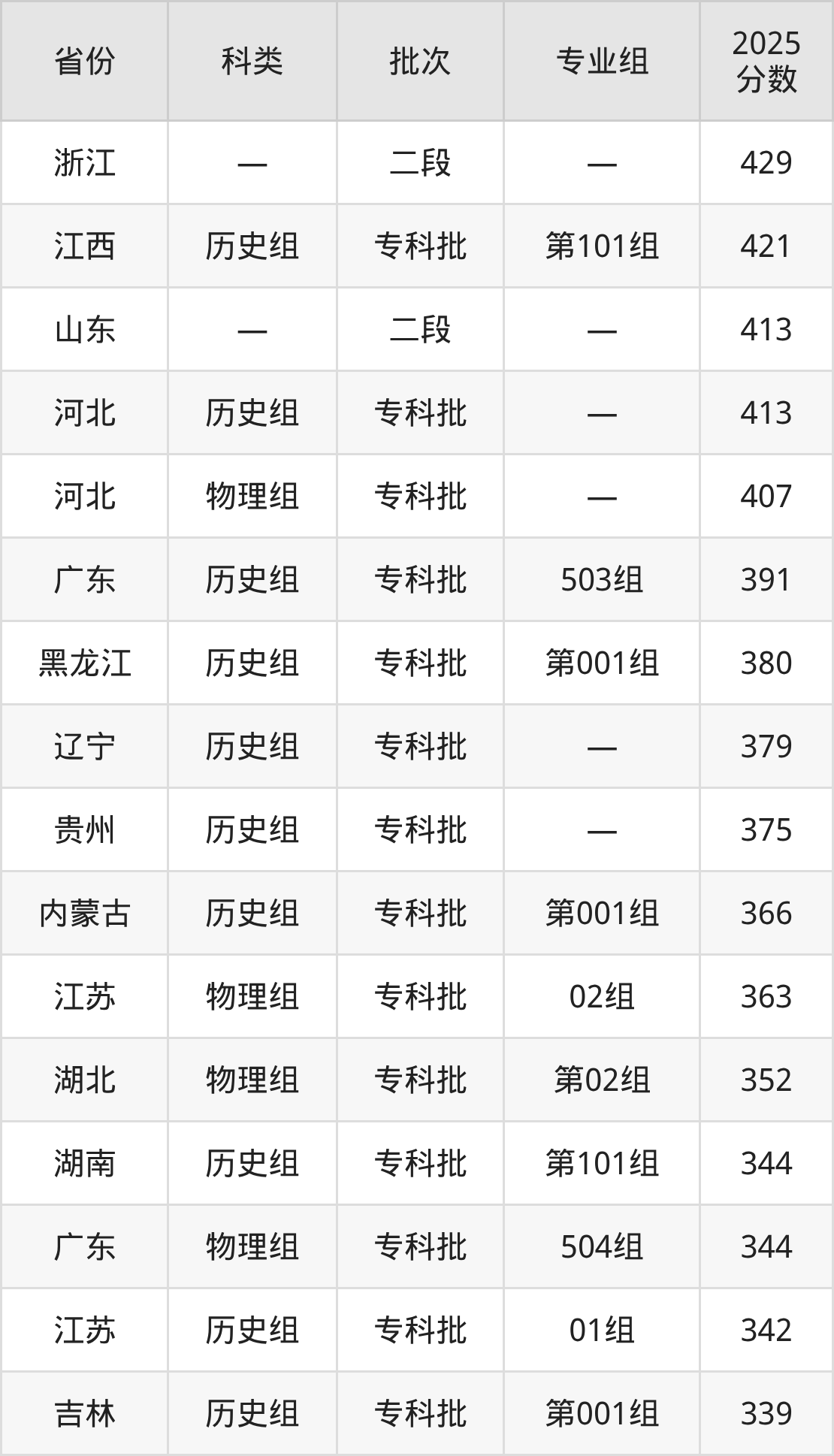 而浙江地区考生的分数门槛最高,2025年黑龙江建筑职业技术学院在浙江招生最低分为429分,考生至少要超二段线161分才有可能被录取。
