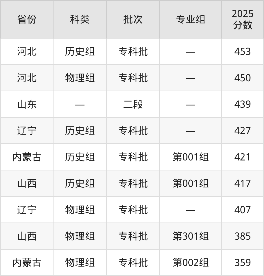 而河北地区历史组考生的分数门槛最高,2025年北京财贸职业学院在河北招生最低分为453分,考生至少要超专科线253分才有可能被录取。