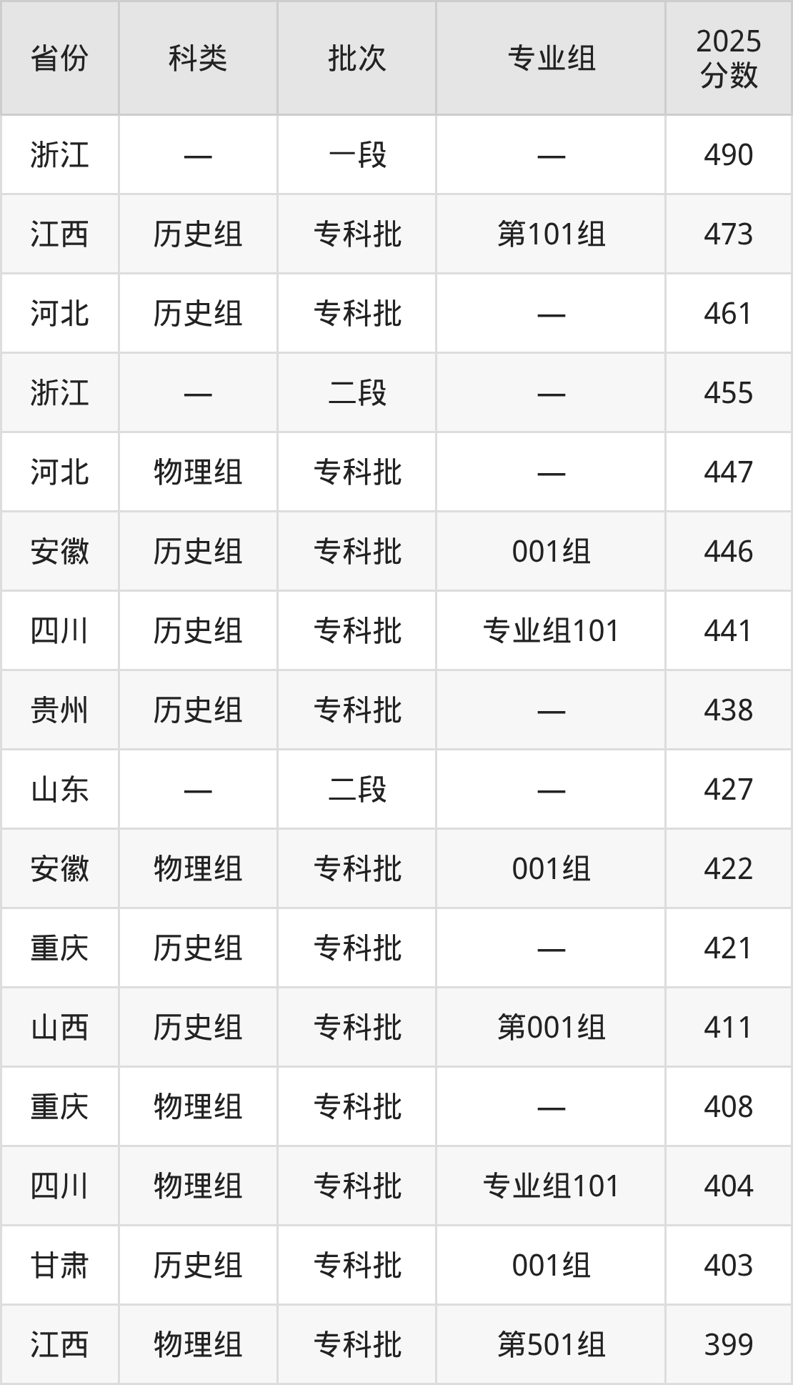 而浙江地区考生的分数门槛最高,2025年洛阳职业技术学院在浙江招生最低分为490分,考生至少要超一段线0分才有可能被录取。