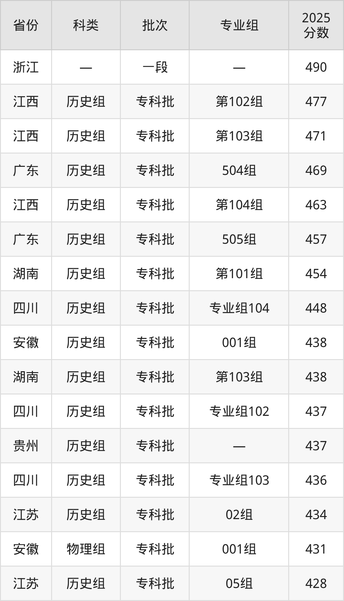 而浙江地区考生的分数门槛最高,2025年上海旅游高等专科学校在浙江招生最低分为490分,考生至少要超一段线0分才有可能被录取。