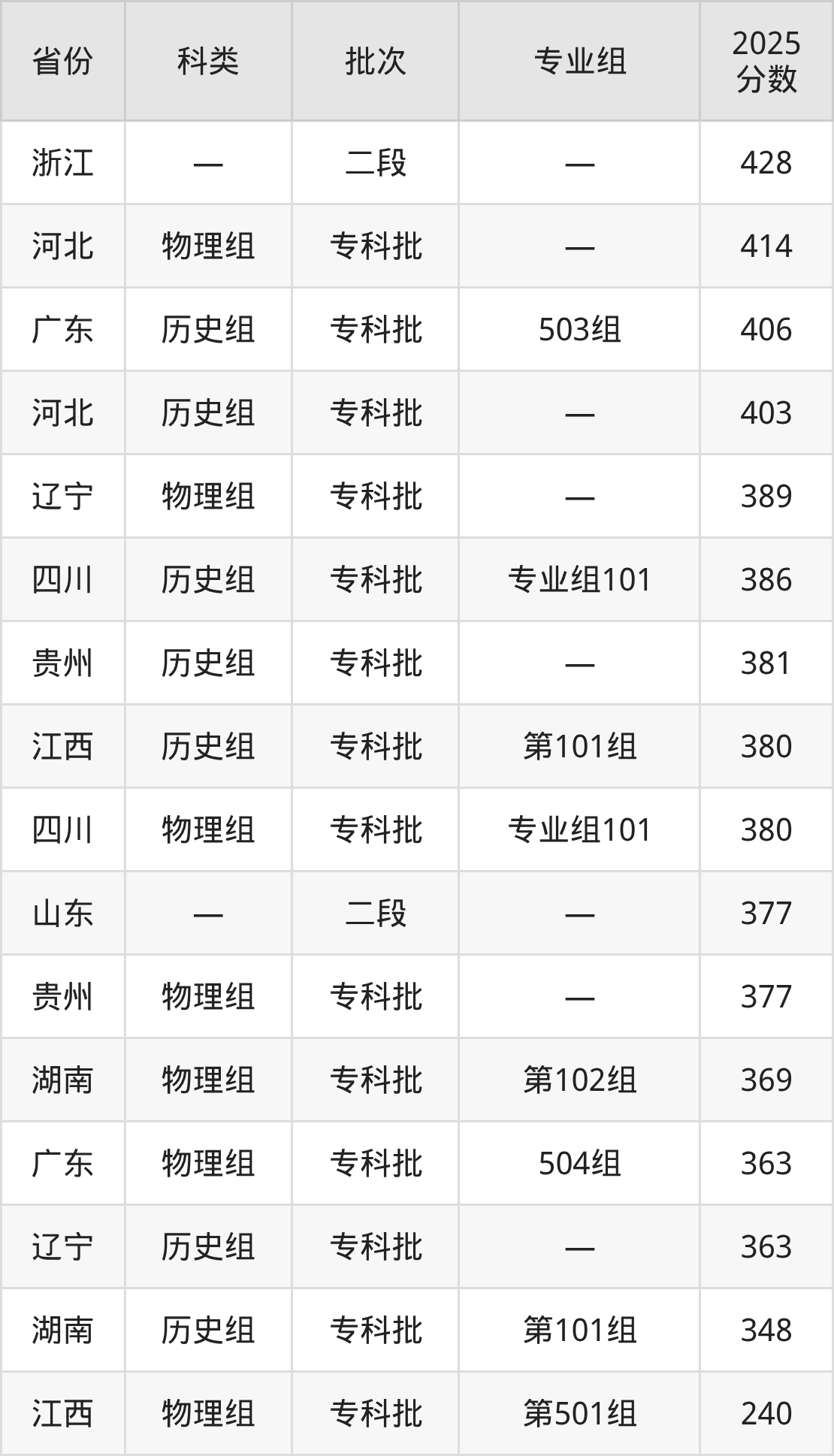 而浙江地区考生的分数门槛最高,2025年江西应用工程职业学院在浙江招生最低分为428分,考生至少要超二段线160分才有可能被录取。