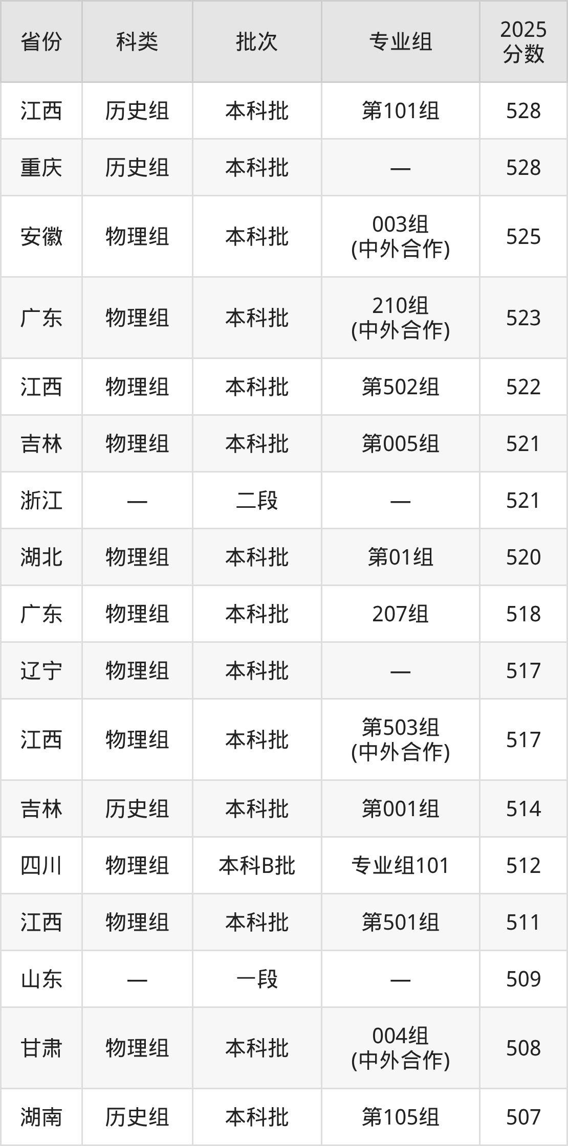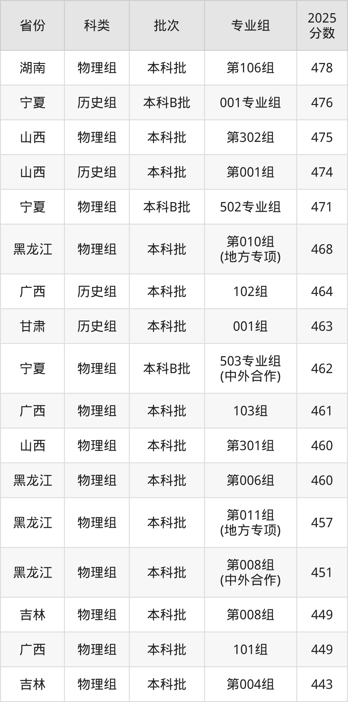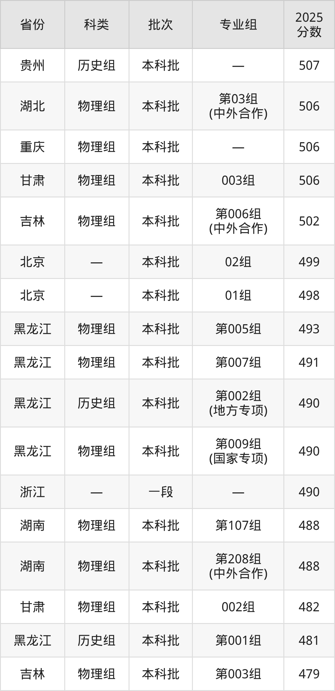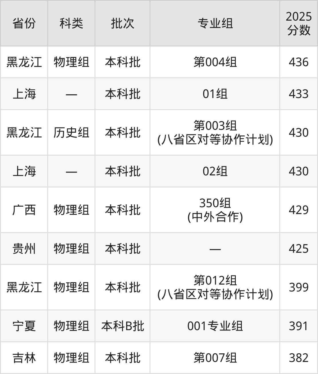2025年东北石油大学在全国普通批次招生的录取分数范围位于382~576分之间,其中省内分数范围为399分~493分,历史组最低分专业组为“第003组(八省区对等协作计划)”,考生430分即可报考,物理组最低分专业组为“第012组(八省区对等协作计划)”,考生399分即可报考。