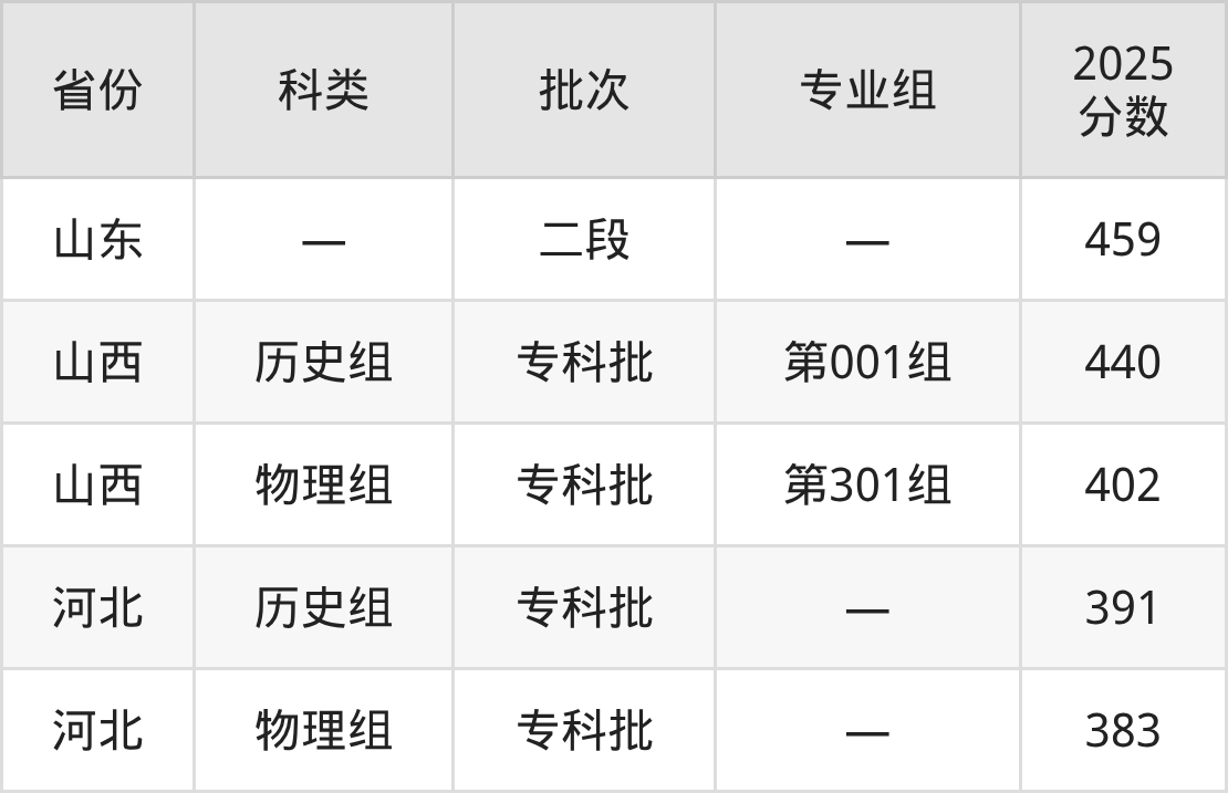 而山东地区考生的分数门槛最高,2025年河北政法职业学院在山东招生最低分为459分,考生至少要超二段线309分才有可能被录取。