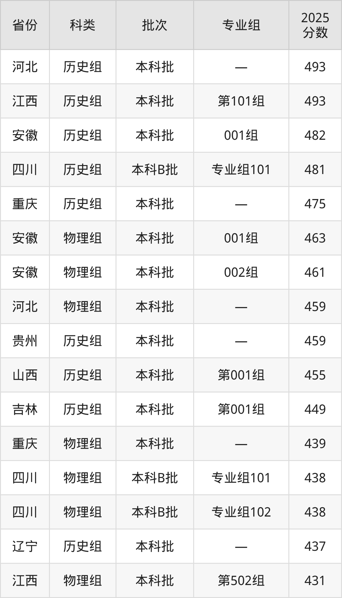 而河北地区历史组考生的分数门槛最高,2025年辽宁理工学院在河北招生最低分为493分,考生至少要超本科线16分才有可能被录取。