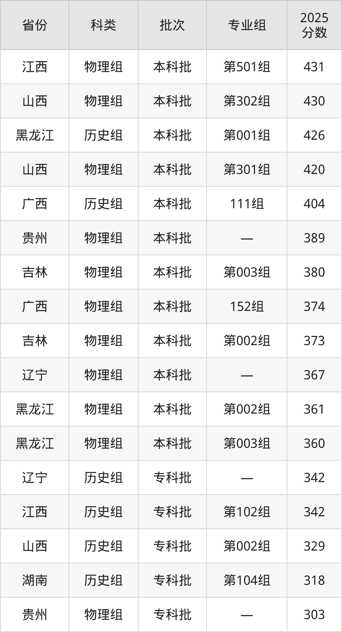 2025年辽宁理工学院在全国普通批次招生的录取分数范围位于150~493分之间,其中省内分数范围为151分~437分,历史组考生342分即可报考,物理组考生151分即可报考。