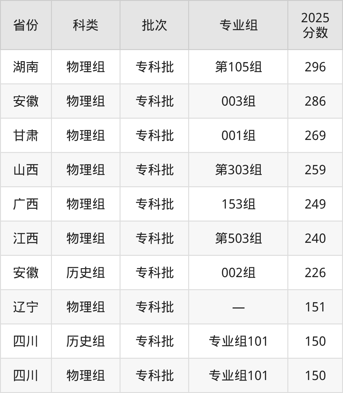 辽宁理工学院在省外招生的最低分为150分,其中四川地区历史组考生上辽宁理工学院的分数门槛最低,考生成绩达专科线即可报考。其次是安徽历史组考生,上辽宁理工学院至少要超专科线26分(226分)。