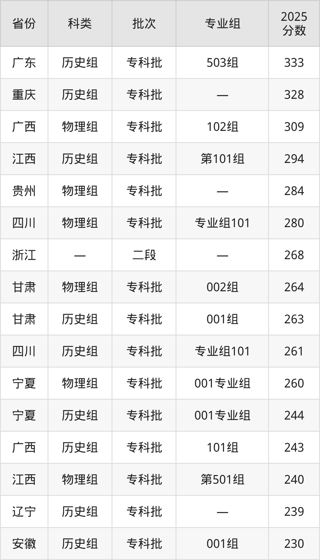 而广东地区历史组考生的分数门槛最高,2025年四川文轩职业学院503组在广东招生最低分为333分,考生至少要超专科线118分才有可能被录取。