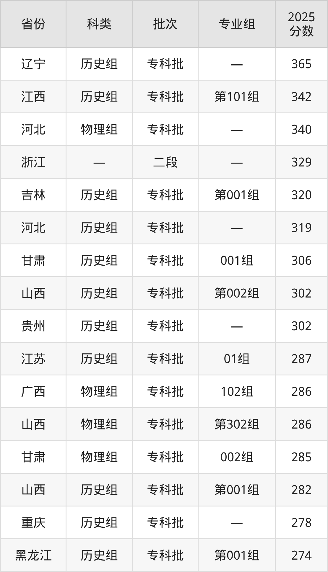 而辽宁地区历史组考生的分数门槛最高,2025年青岛求实职业技术学院在辽宁招生最低分为365分,考生至少要超专科线215分才有可能被录取。