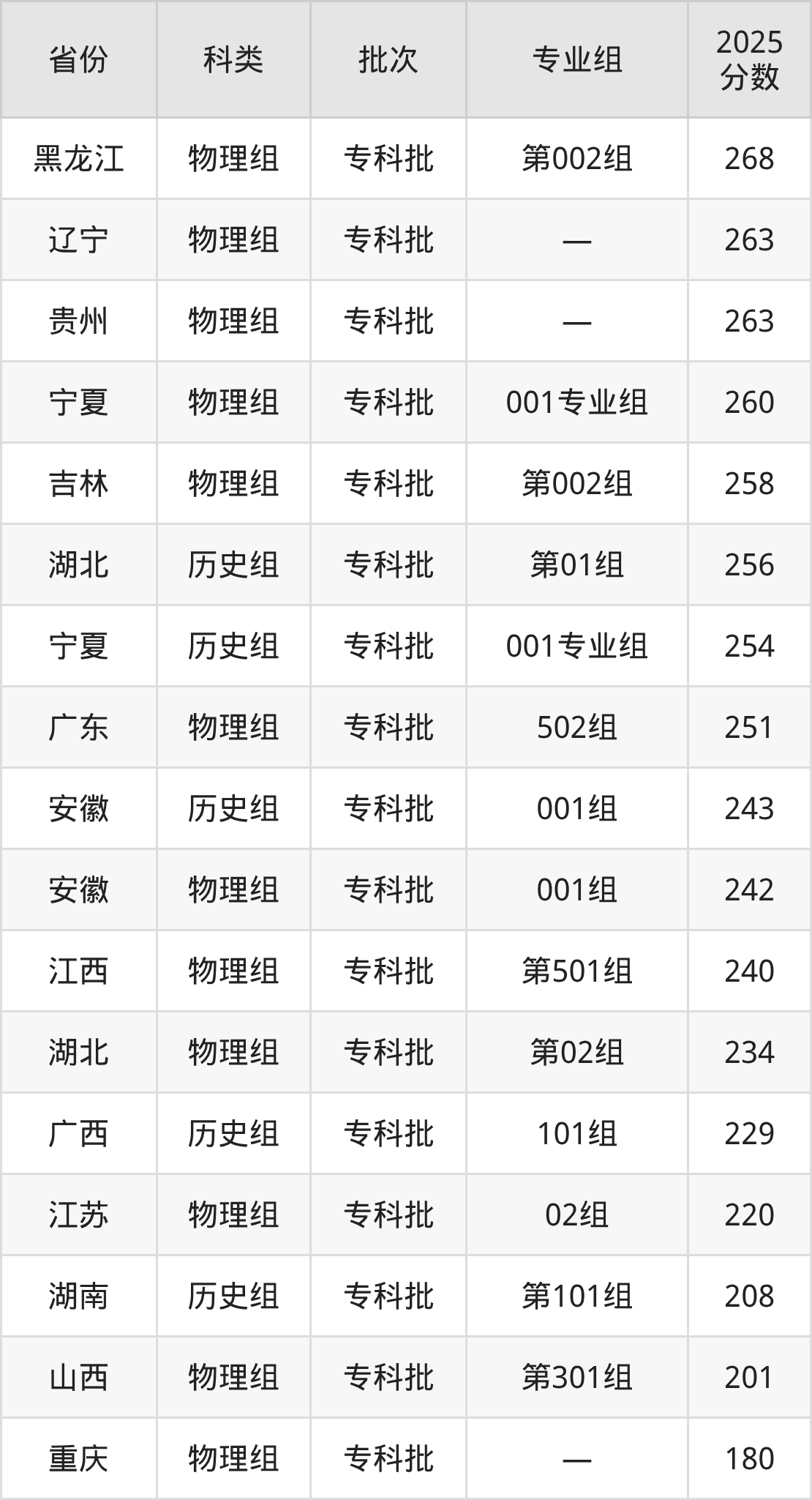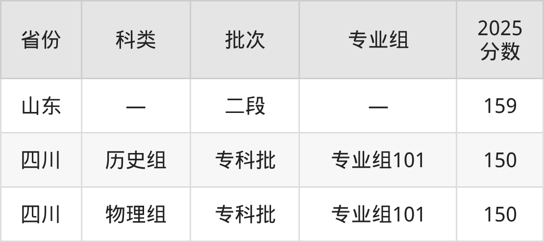 青岛求实职业技术学院在省外招生的最低分为150分,其中四川地区历史组考生上青岛求实职业技术学院的分数门槛最低,考生成绩达专科线即可报考。其次是重庆物理组考生,上青岛求实职业技术学院至少要超专科线0分(180分)。