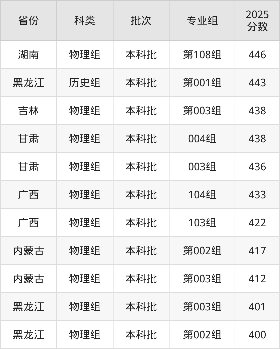 红河学院在省外招生最低录取分数线为400分,不同地区、不同科类的考生最低分有差异。