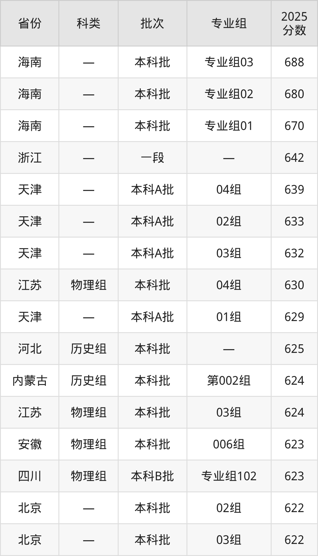 而海南地区考生的分数门槛最高,2025年兰州大学专业组03在海南招生最低分为688分,考生至少要超本科线208分才有可能被录取。