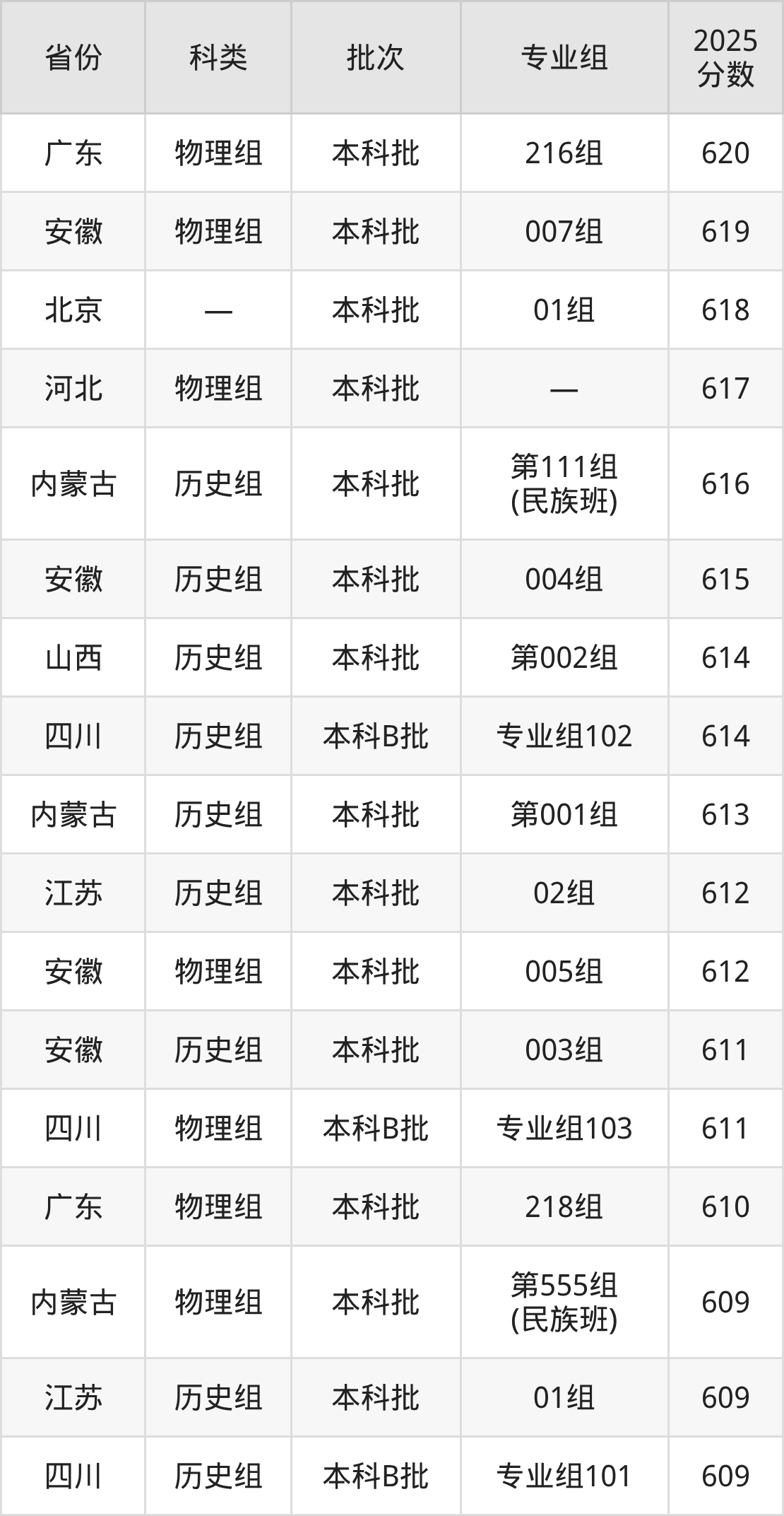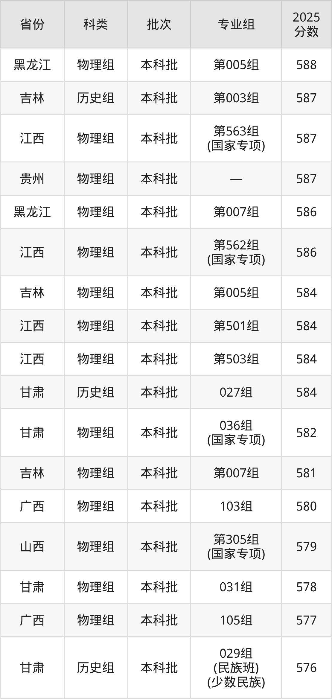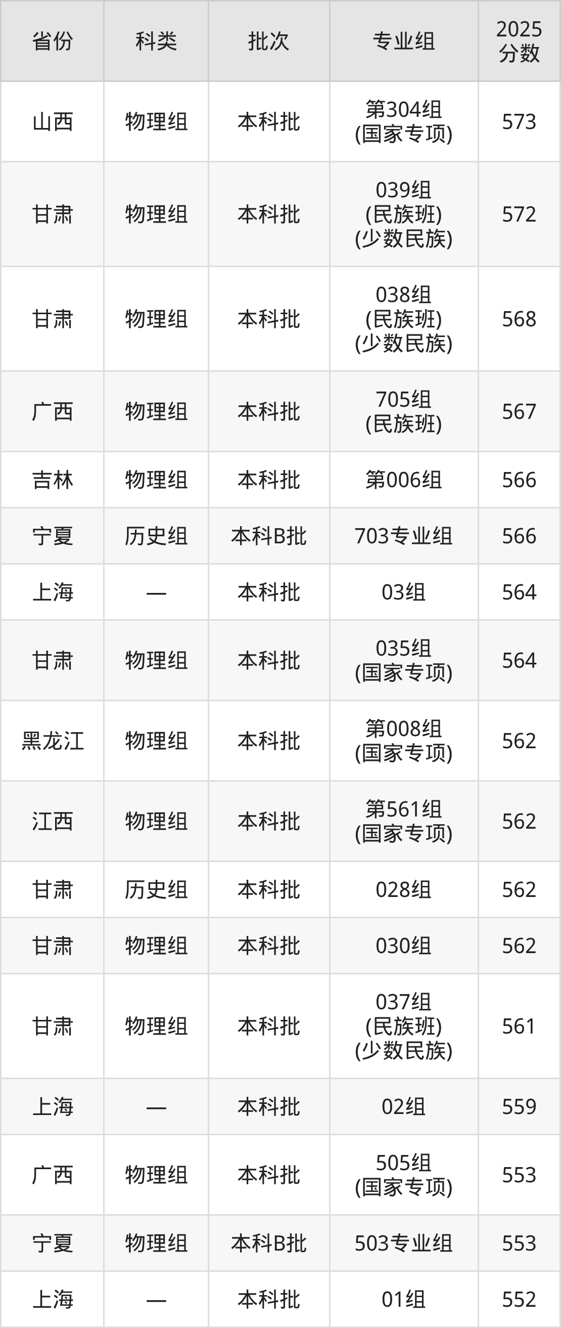 下面是兰州大学2025年在全国各省的录取分数线一览表,供参考: