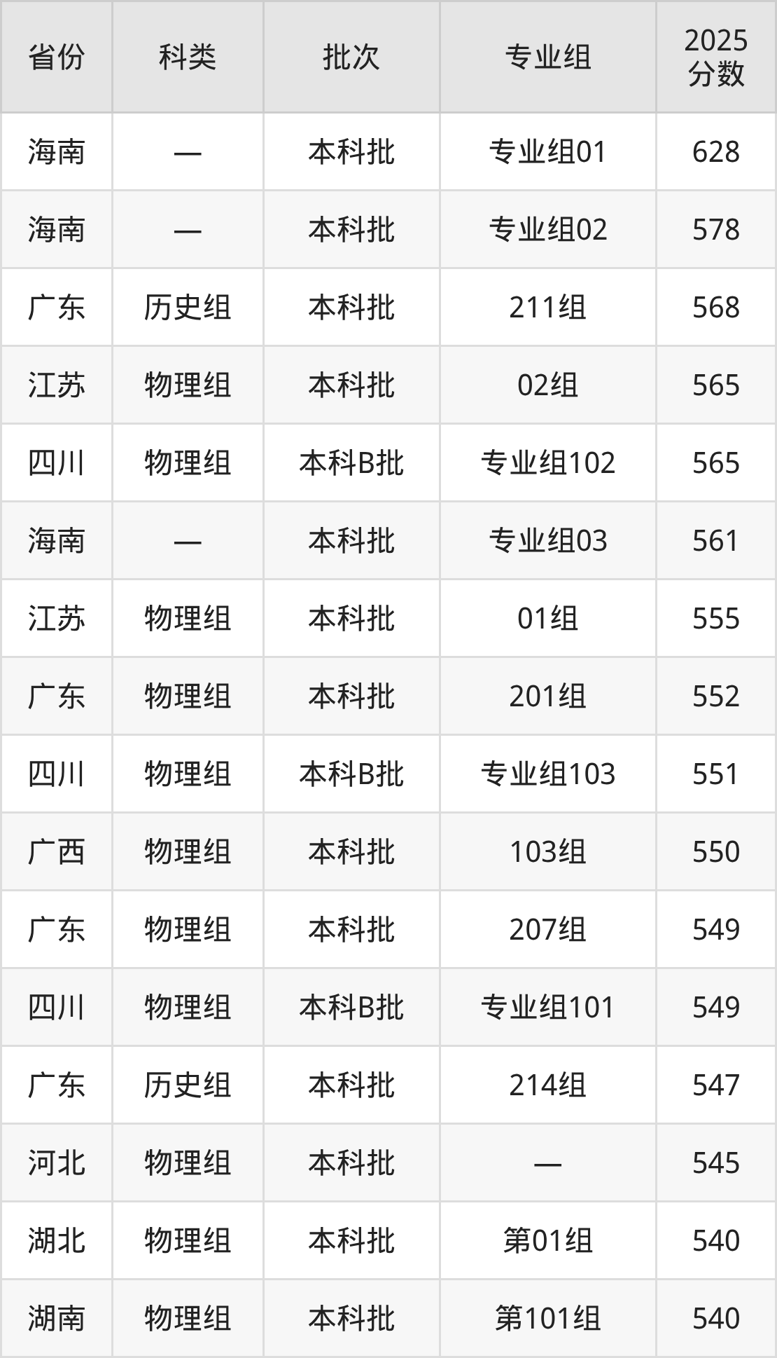 而海南地区考生的分数门槛最高,2025年广东药科大学专业组01在海南招生最低分为628分,考生至少要超本科线148分才有可能被录取。