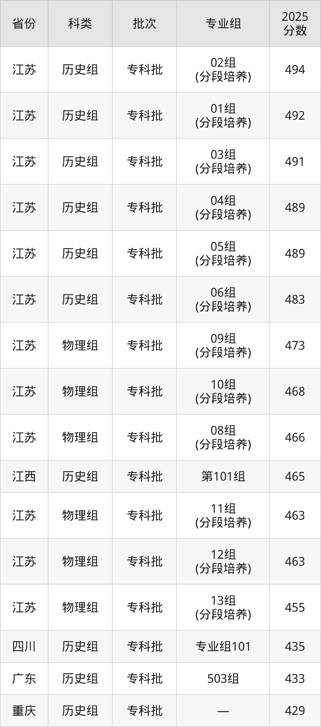 而江西地区历史组考生的分数门槛最高,2025年江苏商贸职业学院第101组在江西招生最低分为465分,考生至少要超专科线175分才有可能被录取。