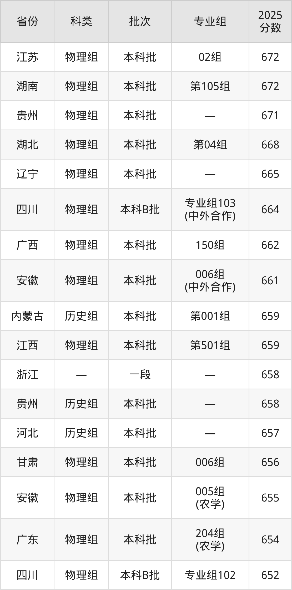 下面是浙江大学2025年在全国各省的录取分数线一览表,供参考: