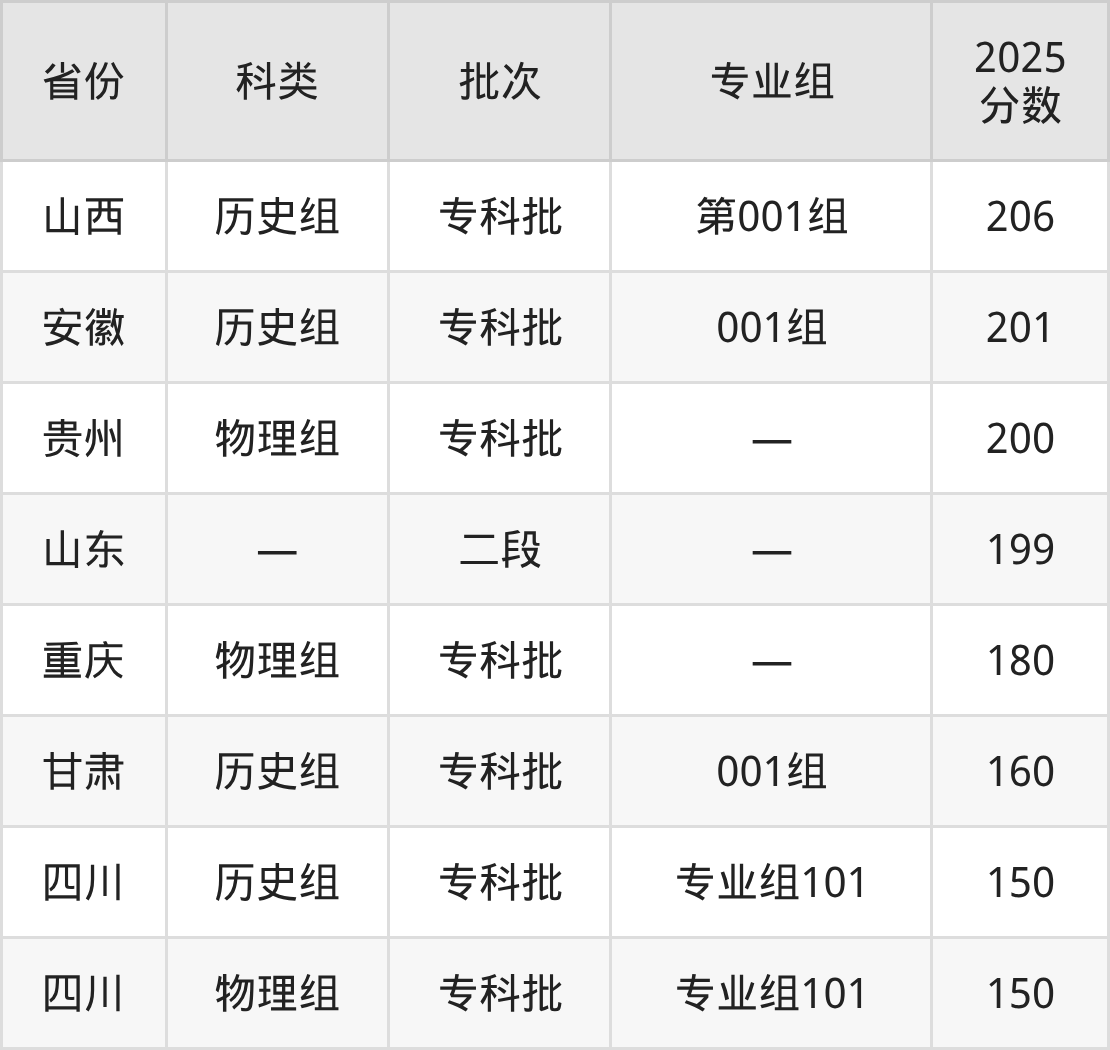 下面是贵州工贸职业学院2025年在全国各省的录取分数线一览表,供参考:
