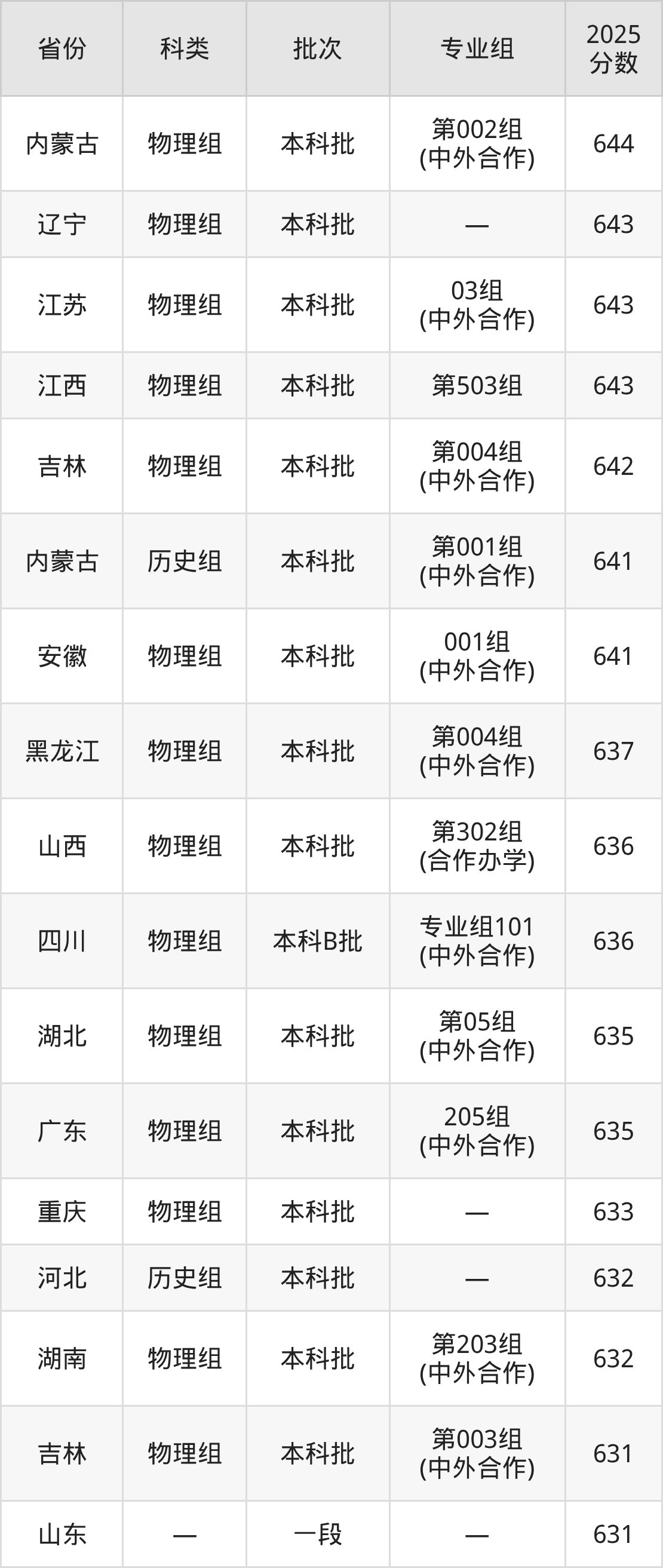 下面是中国人民大学(苏州校区)2025年在全国各省的录取分数线一览表,供参考: