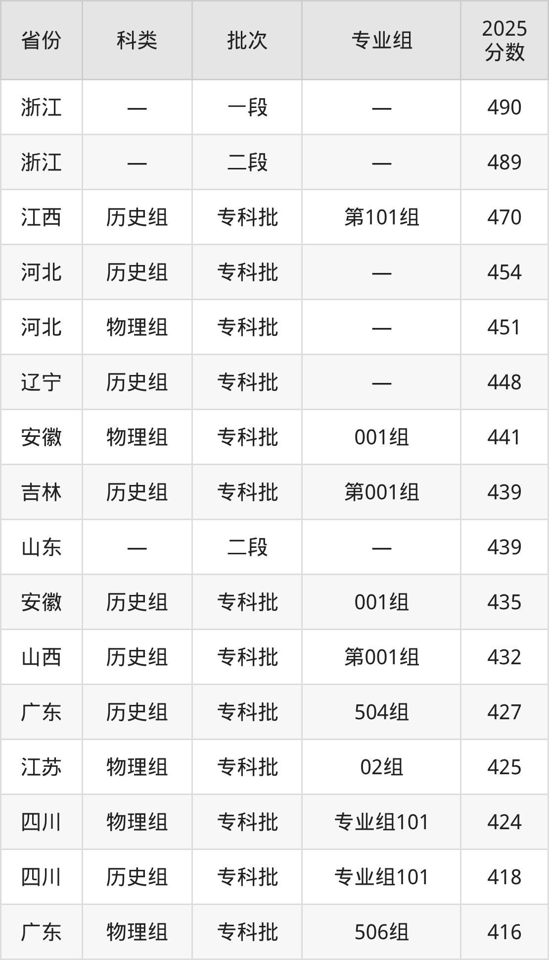 而浙江地区考生的分数门槛最高,2025年哈尔滨铁道职业技术学院在浙江招生最低分为490分,考生至少要超一段线0分才有可能被录取。
