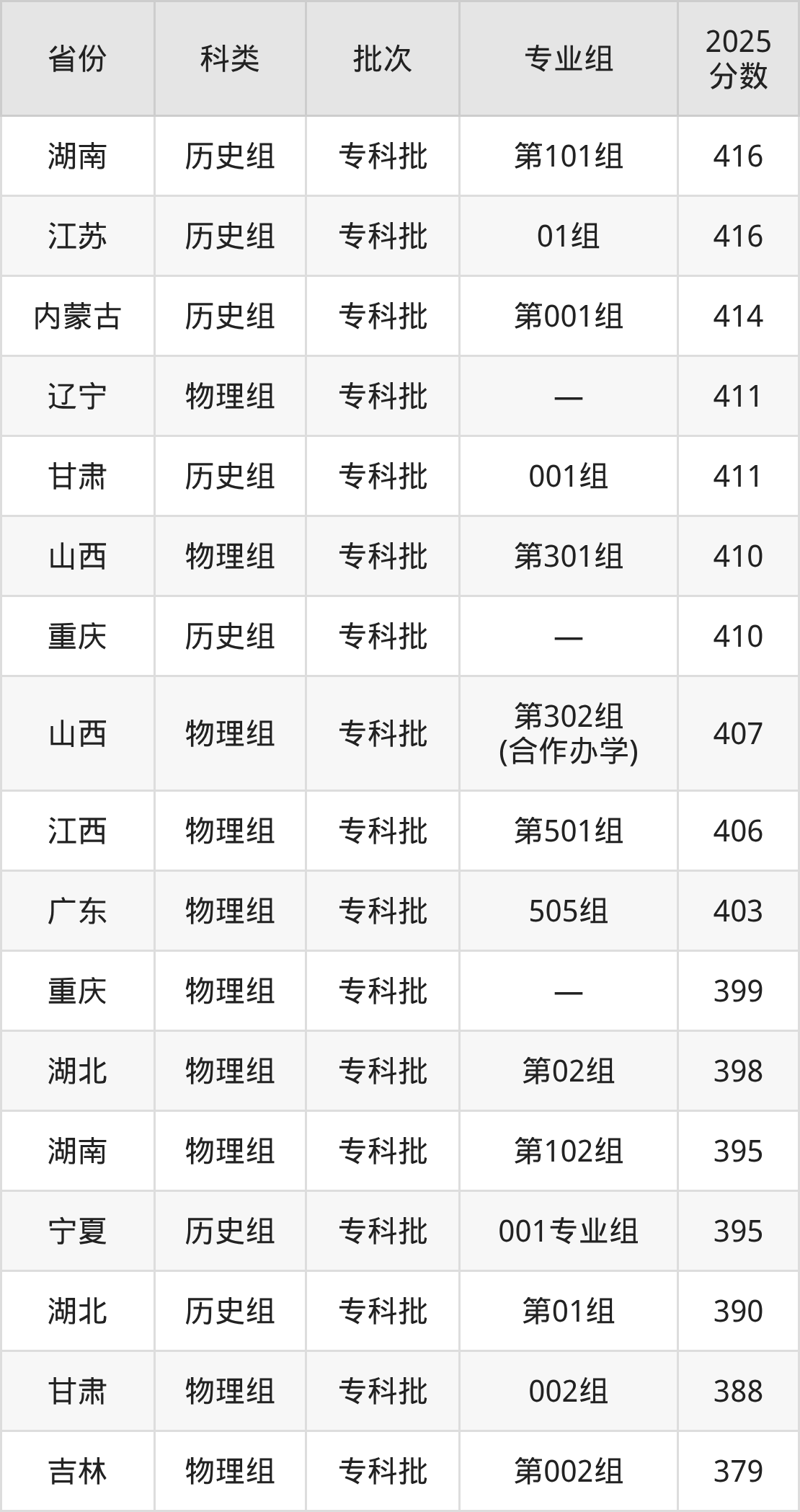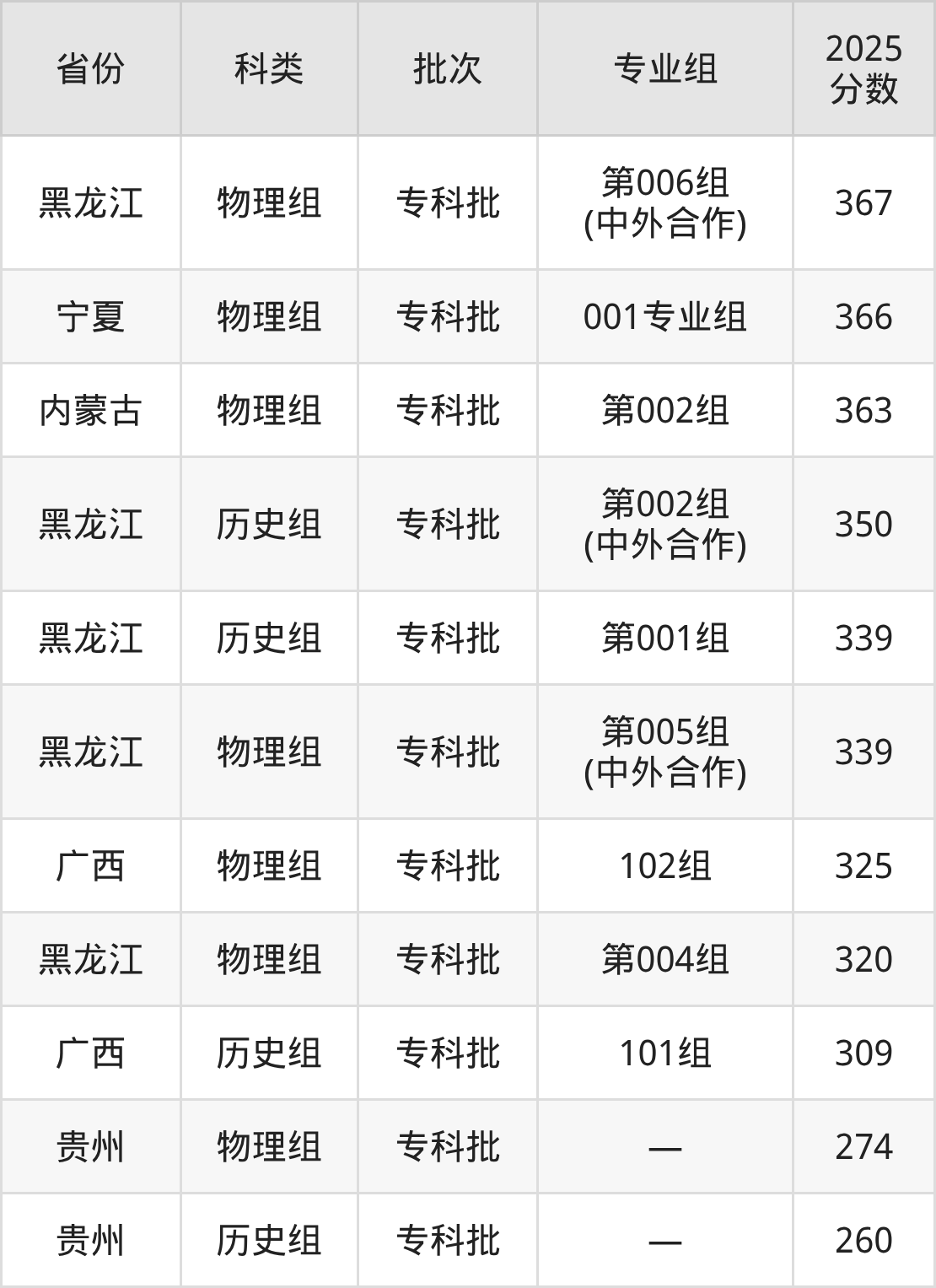 下面是哈尔滨铁道职业技术学院2025年在全国各省的录取分数线一览表,供参考: