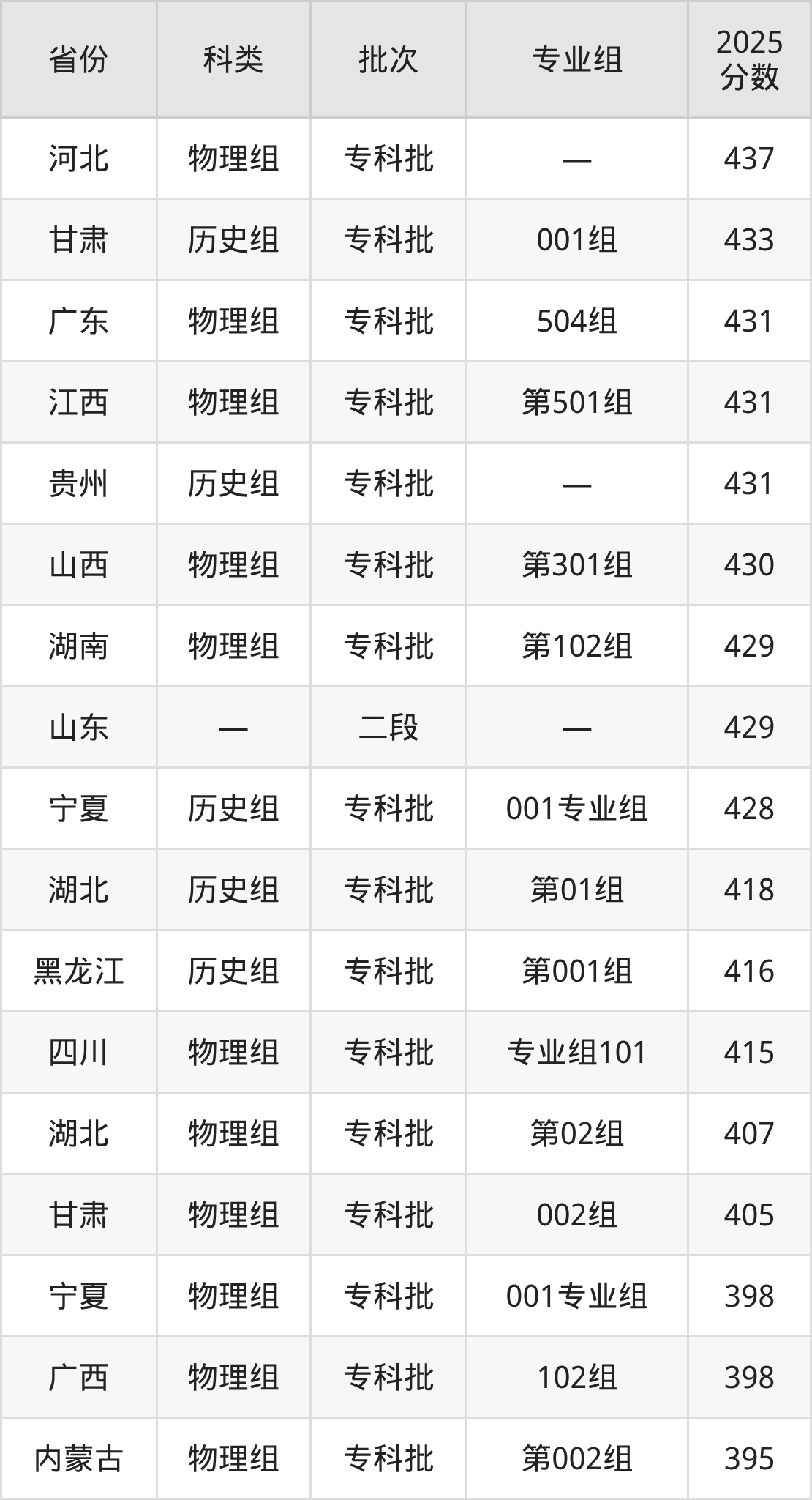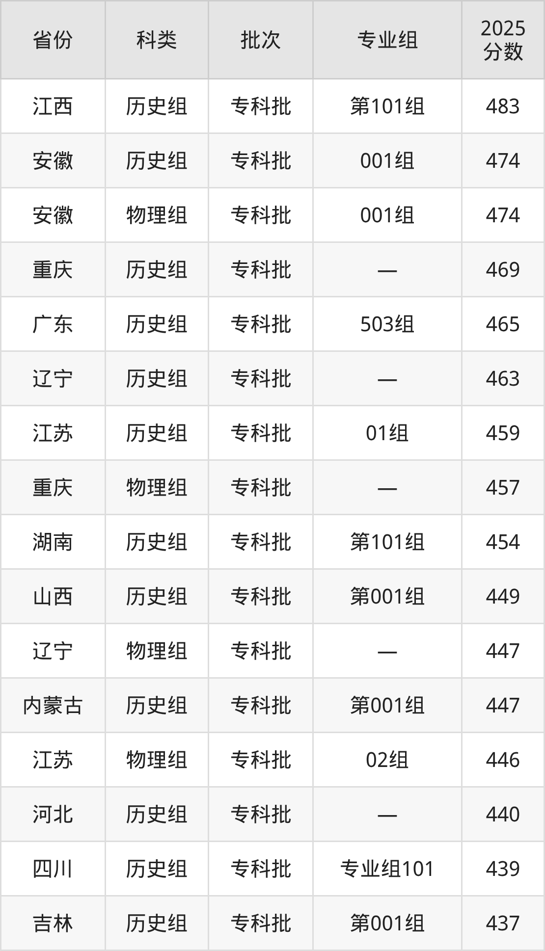而江西地区历史组考生的分数门槛最高,2025年石家庄铁路职业技术学院第101组在江西招生最低分为483分,考生至少要超专科线193分才有可能被录取。
