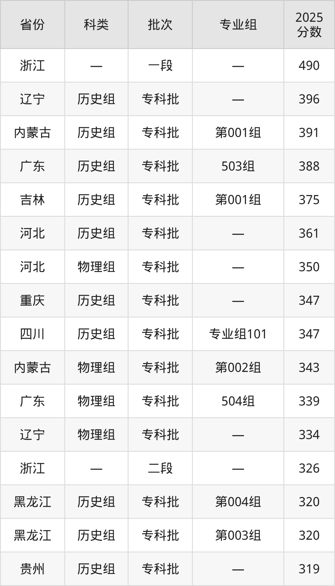 而浙江地区考生的分数门槛最高,2025年黑龙江农垦职业学院在浙江招生最低分为490分,考生至少要超一段线0分才有可能被录取。