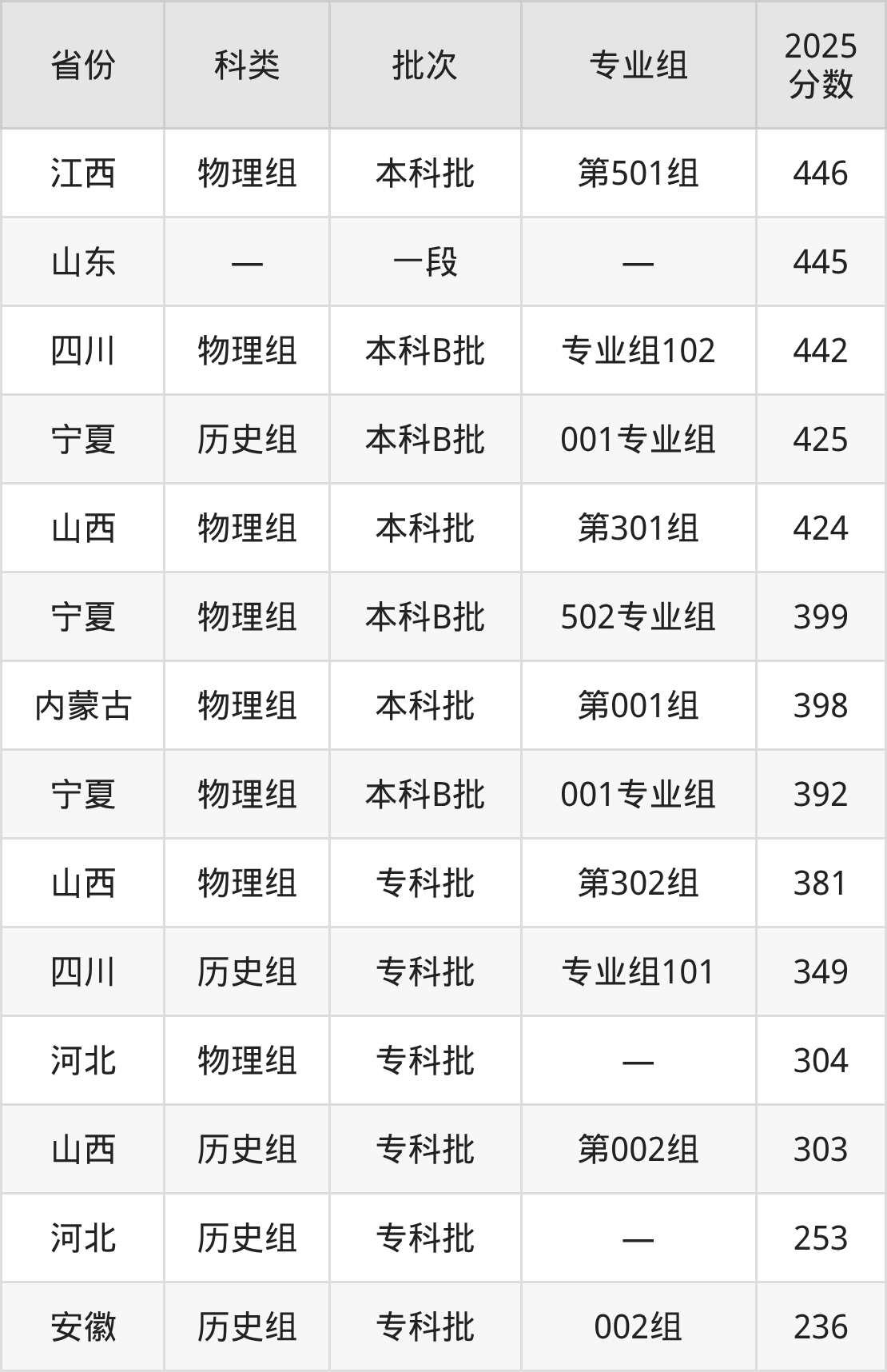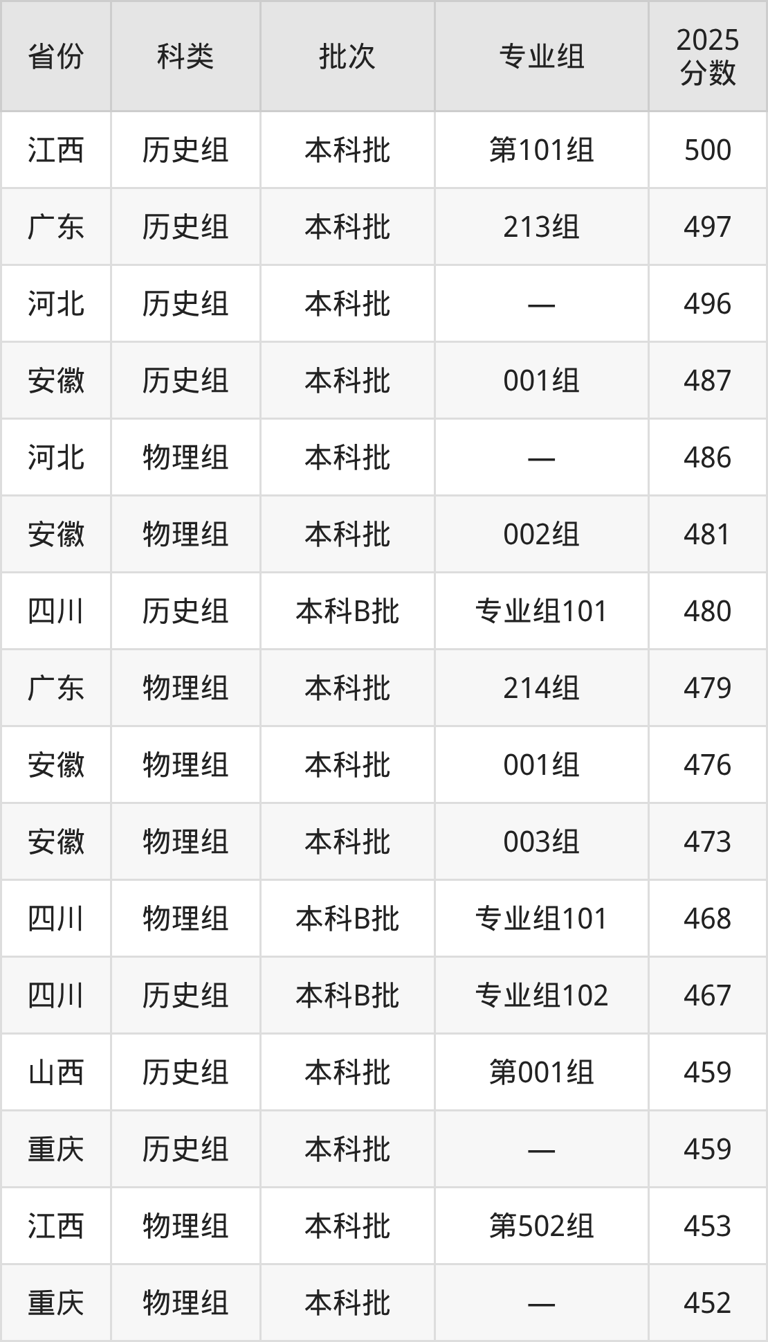而江西地区历史组考生的分数门槛最高,2025年四川文化艺术学院第101组在江西招生最低分为500分,考生至少要超本科线14分才有可能被录取。
