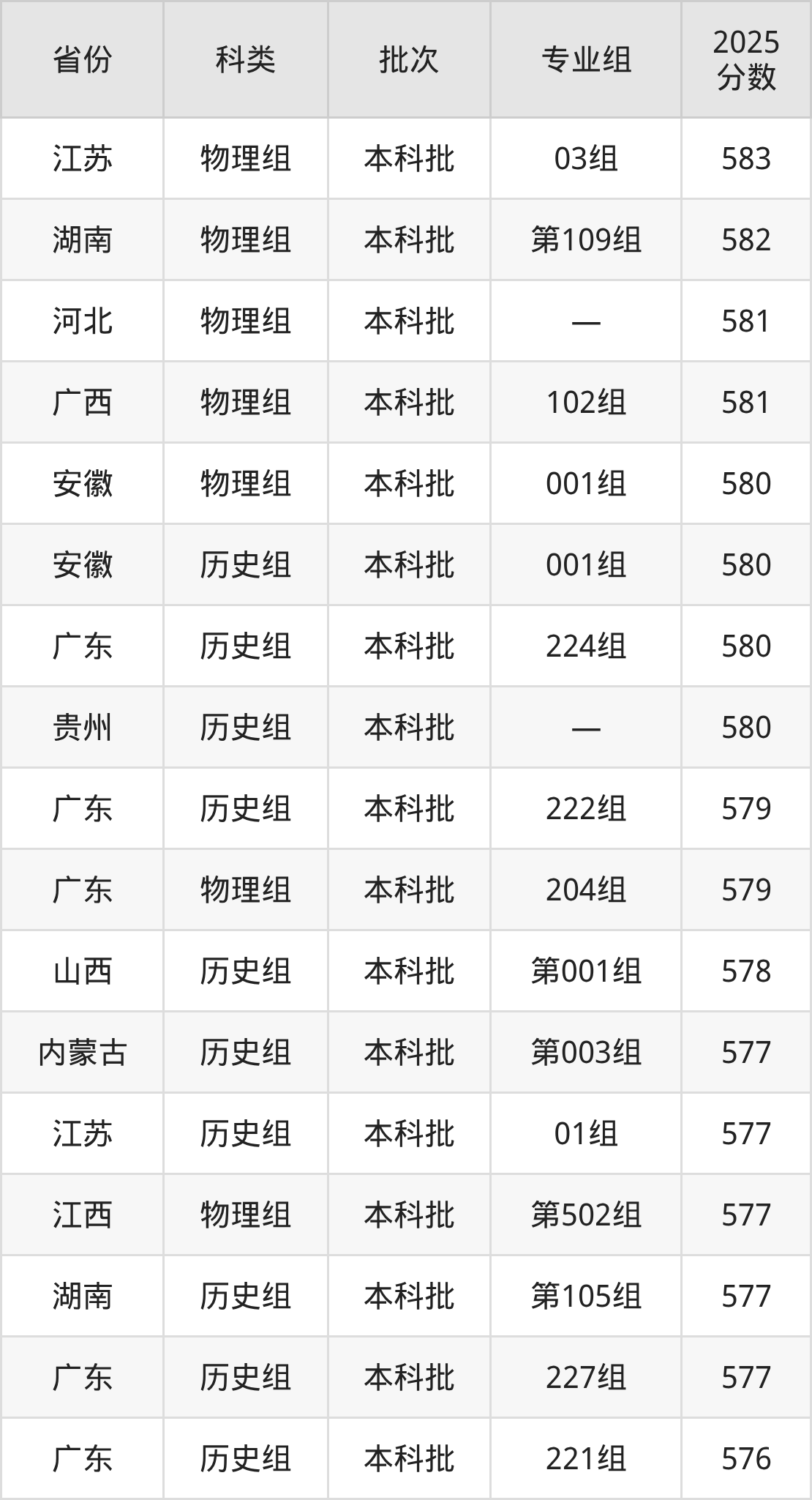 下面是广州大学2025年在全国各省的录取分数线一览表,供参考: