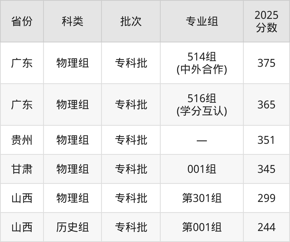 下面是广东水利电力职业技术学院2025年在全国各省的录取分数线一览表,供参考: