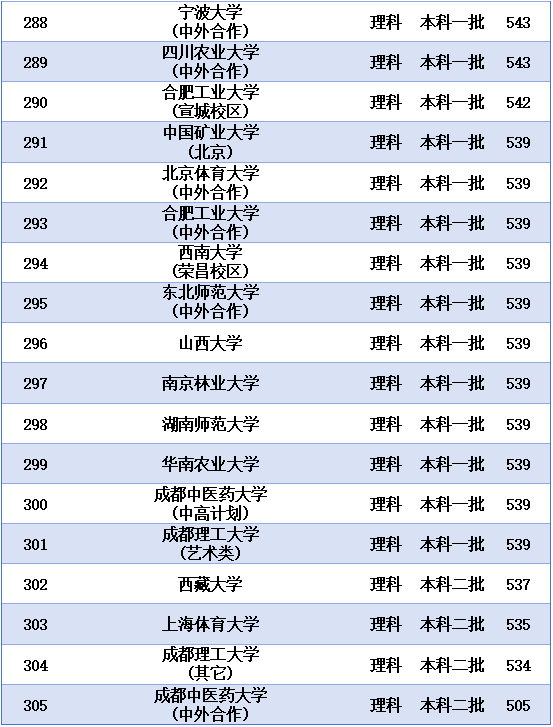 2024年四川理科双一流大学院校分数线排名一览表如下: