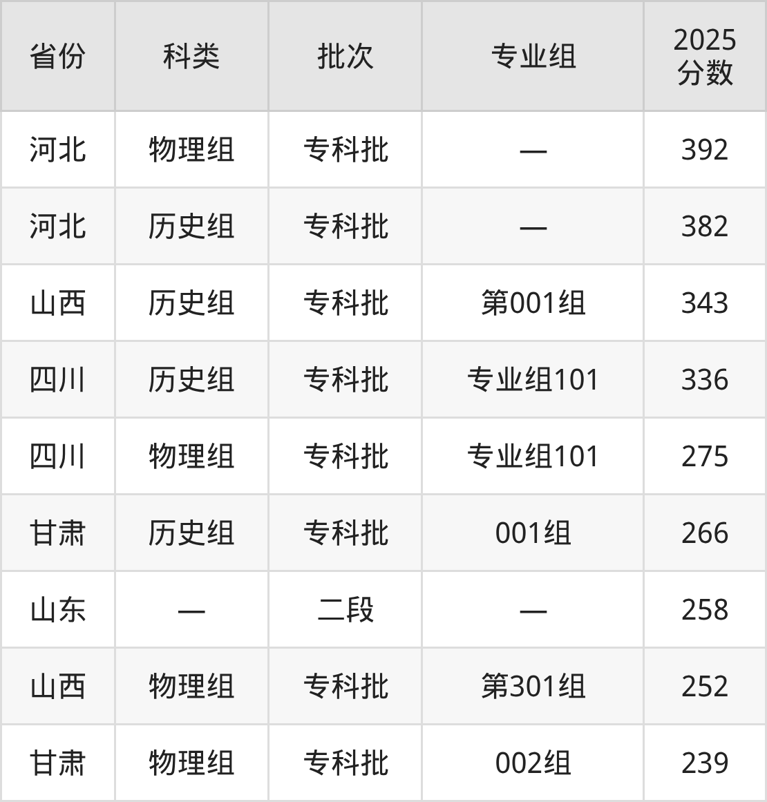 下面是鹤壁能源化工职业学院2025年在全国各省的录取分数线一览表,供参考: