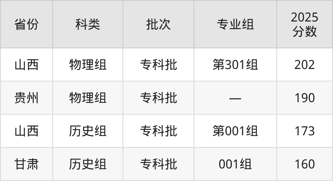 下面是毕节职业技术学院2025年在全国各省的录取分数线一览表,供参考: