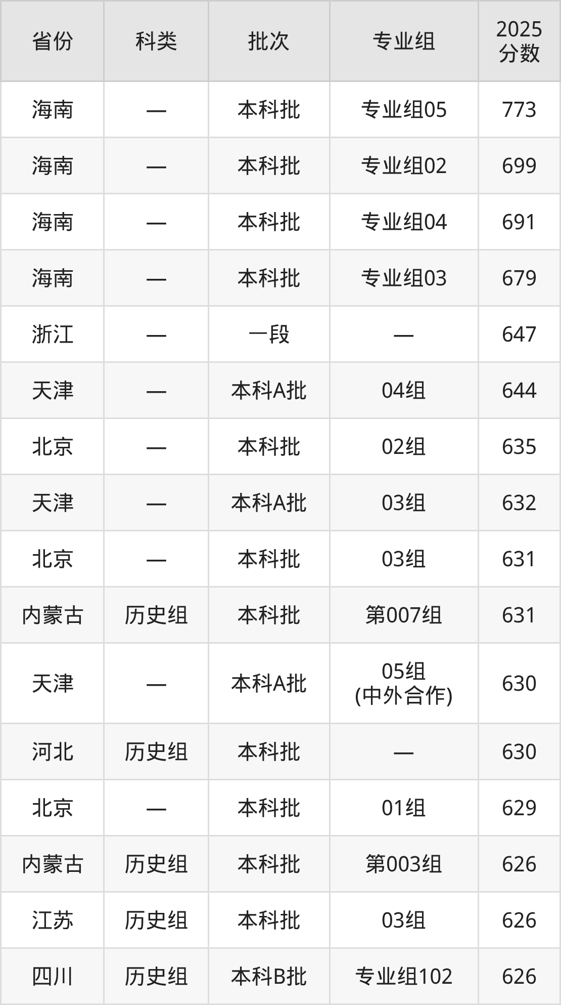 而海南地区考生的分数门槛最高,2025年北京外国语大学专业组05在海南招生最低分为773分,考生至少要超本科线293分才有可能被录取。