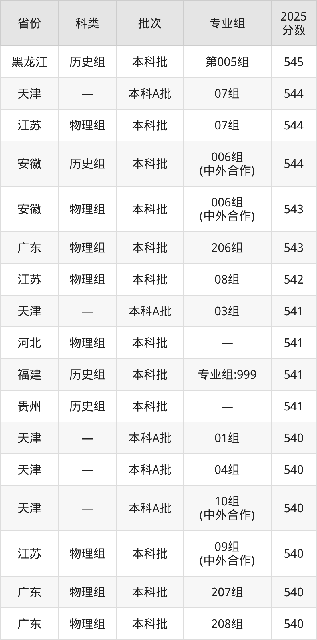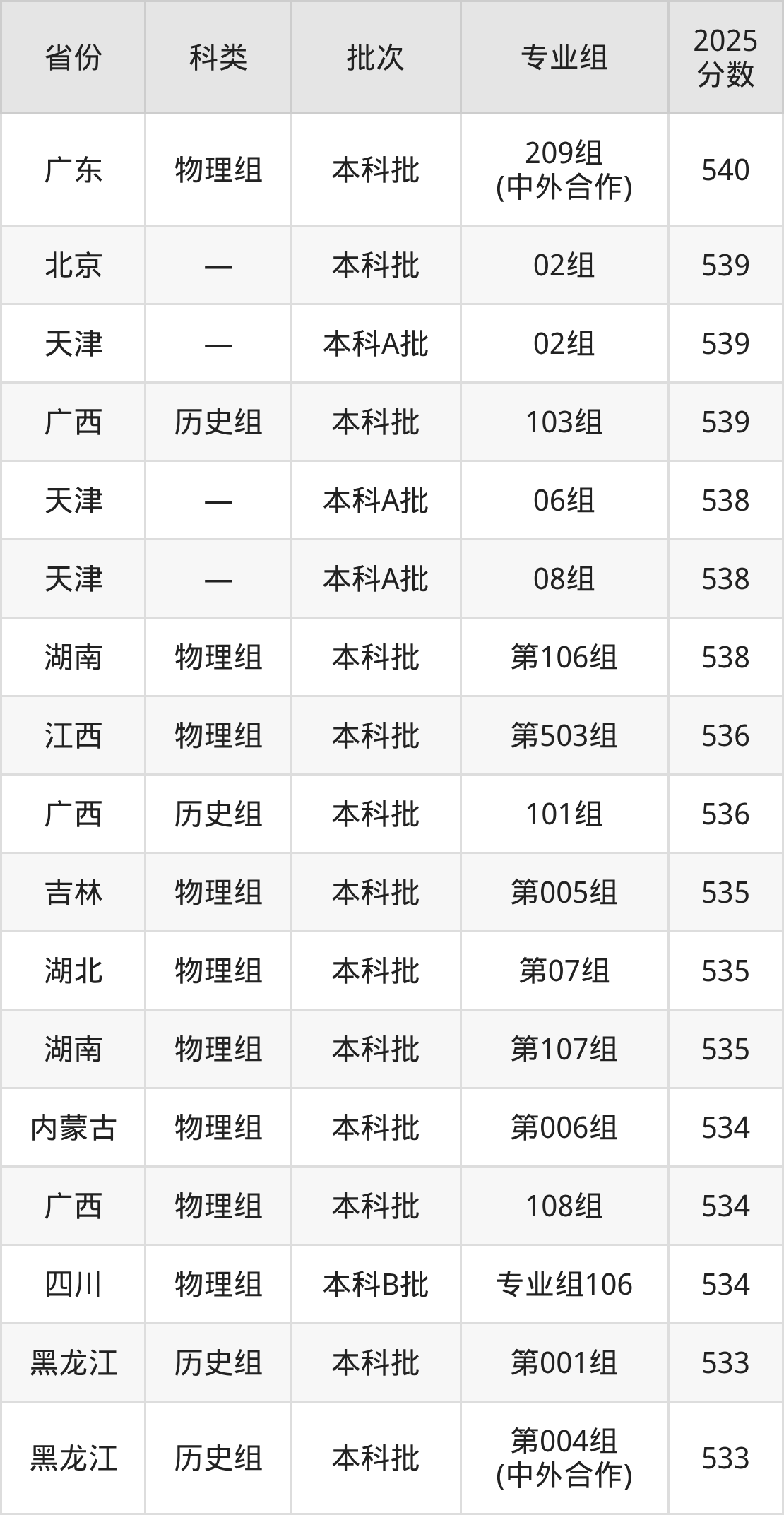 下面是天津外国语大学2025年在全国各省的录取分数线一览表,供参考: