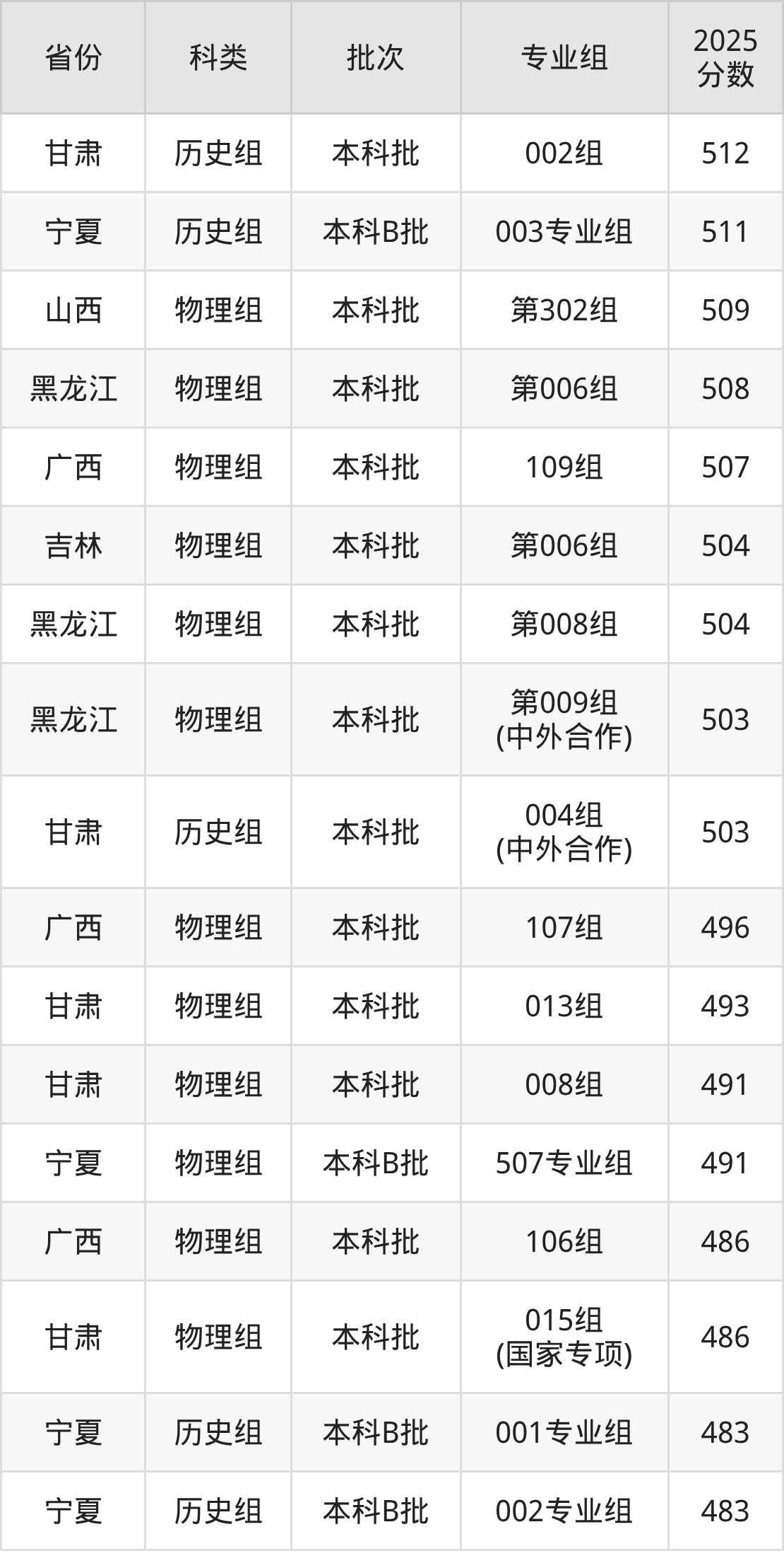 天津外国语大学在市外招生的最低分为445分,其次是甘肃物理组考生,上天津外国语大学至少要超本科线94分(468分)。