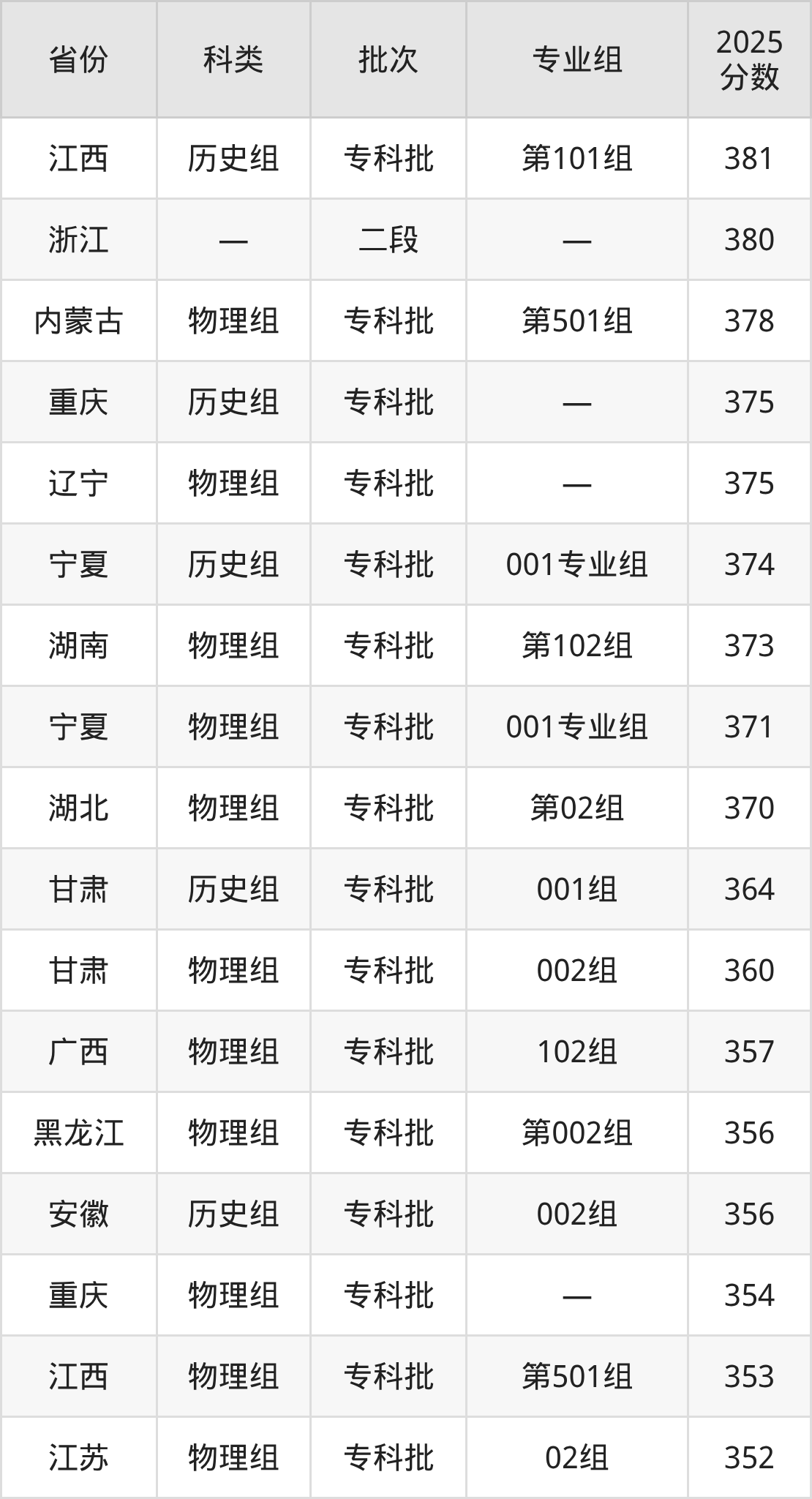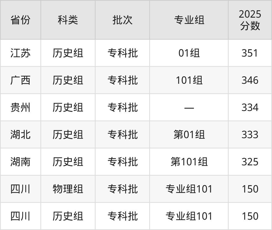 下面是广元中核职业技术学院2025年在全国各省的录取分数线一览表,供参考: