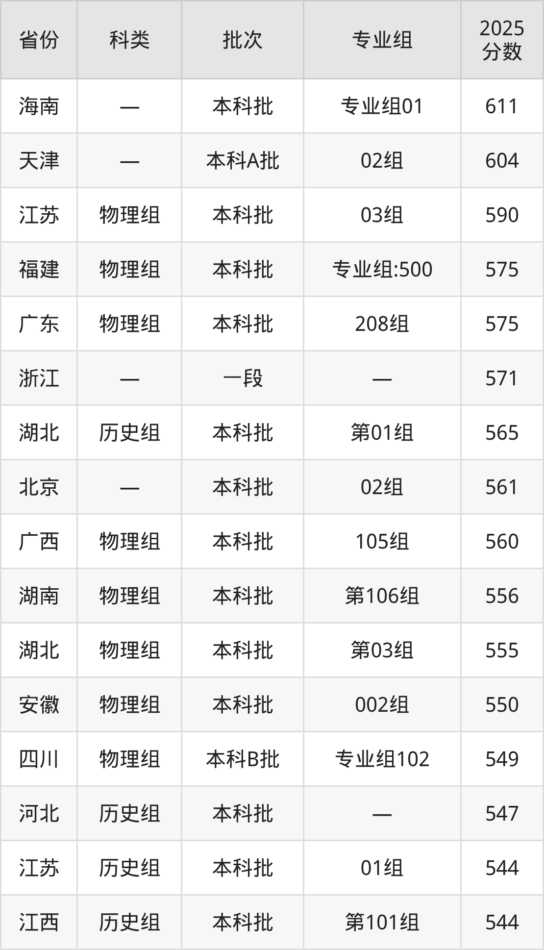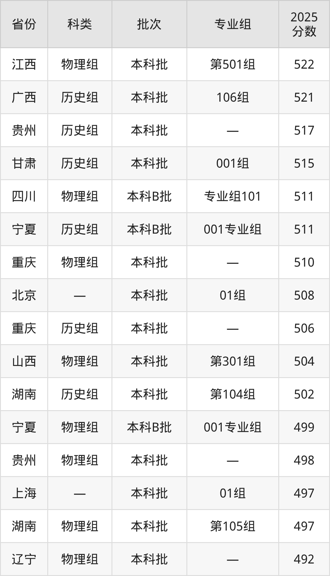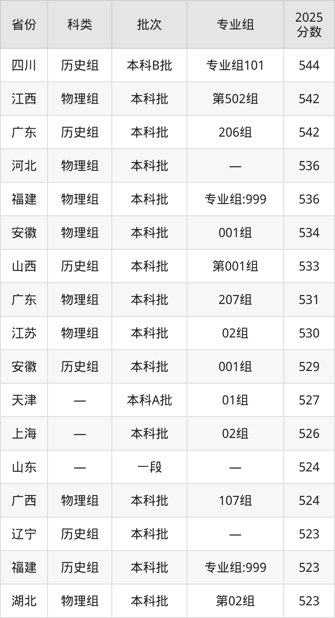 下面是四川美术学院2025年在全国各省的录取分数线一览表,供参考: