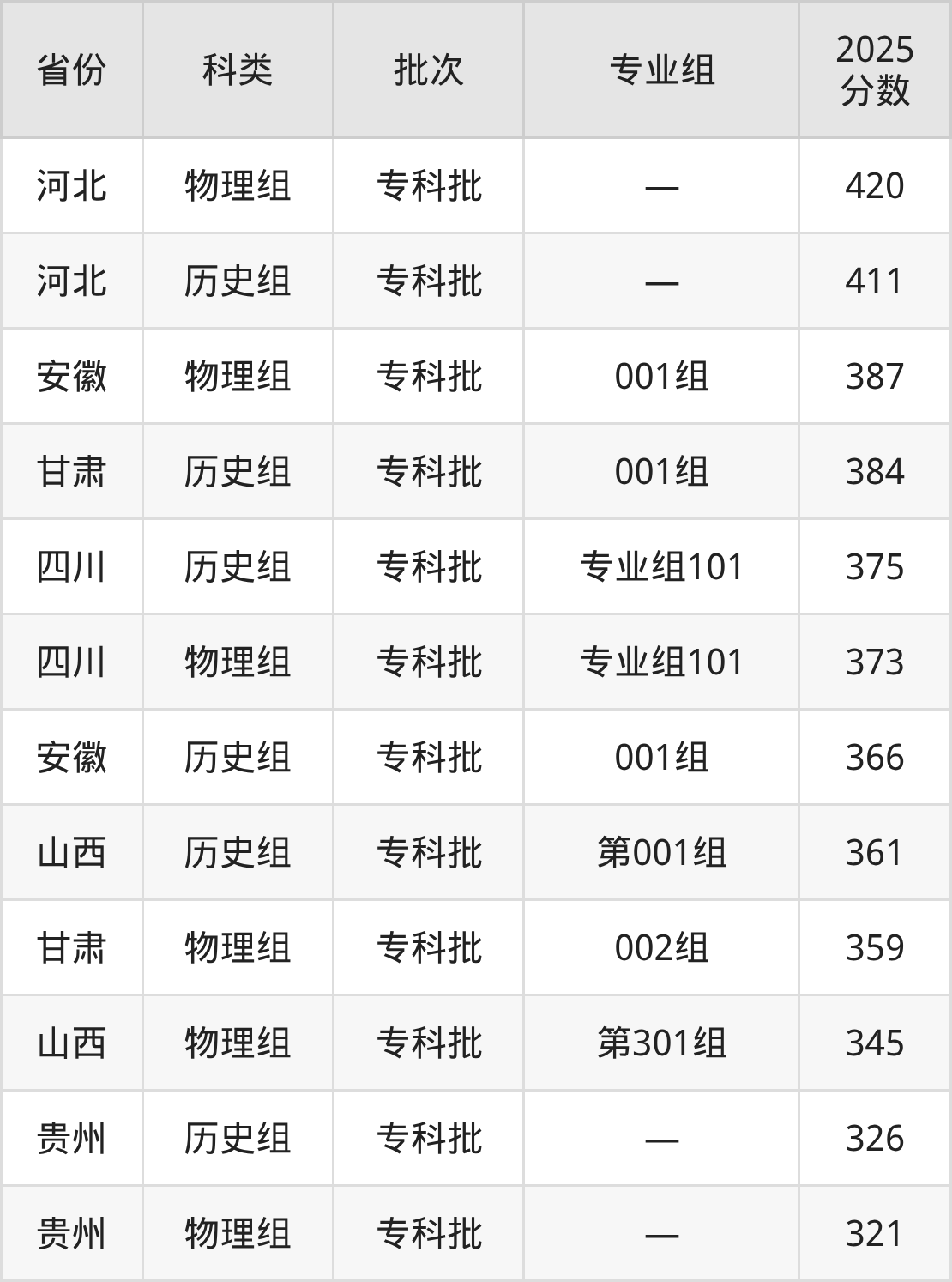 而河北地区物理组考生的分数门槛最高,2025年郑州职业技术学院在河北招生最低分为420分,考生至少要超专科线220分才有可能被录取。