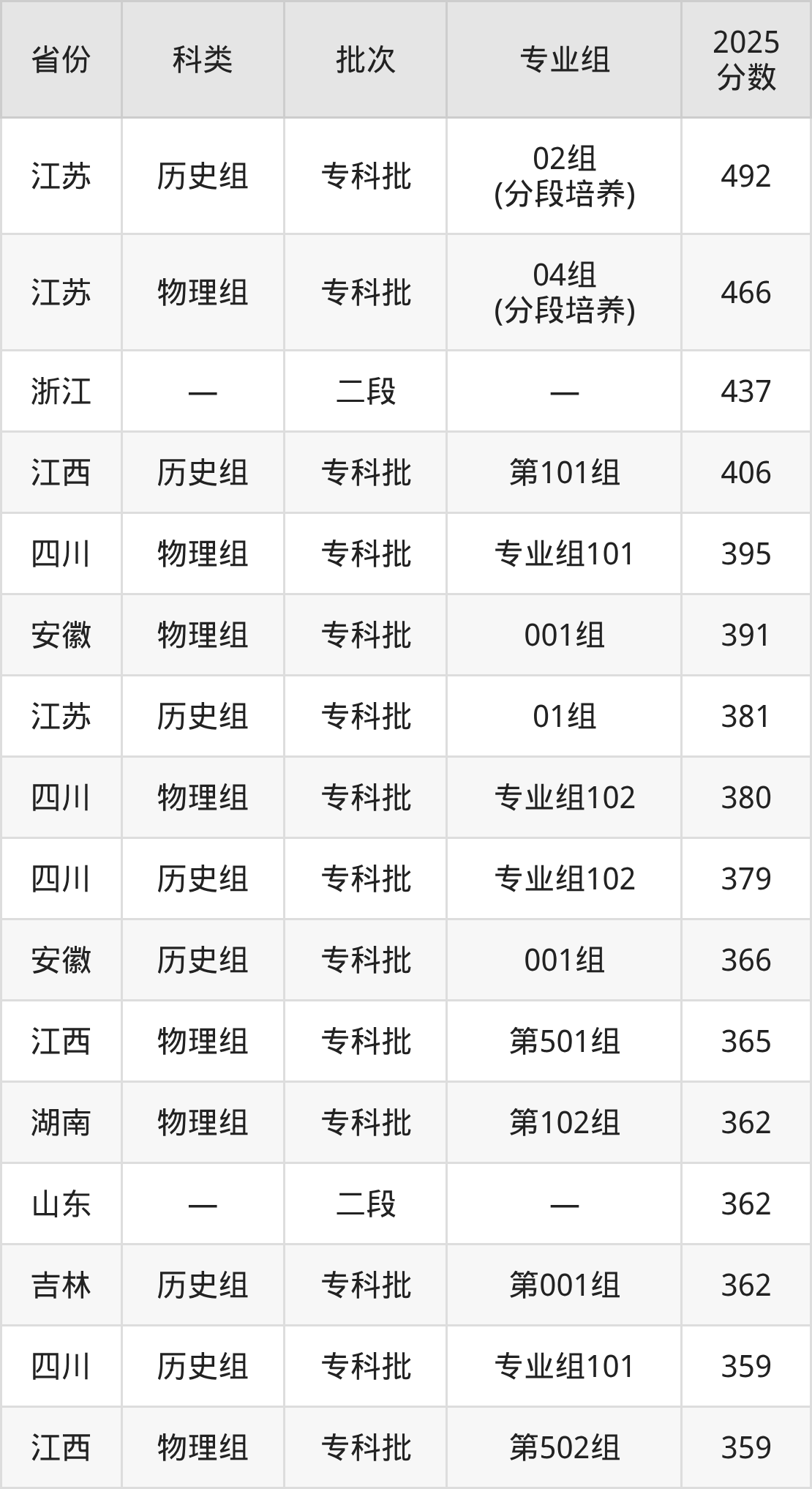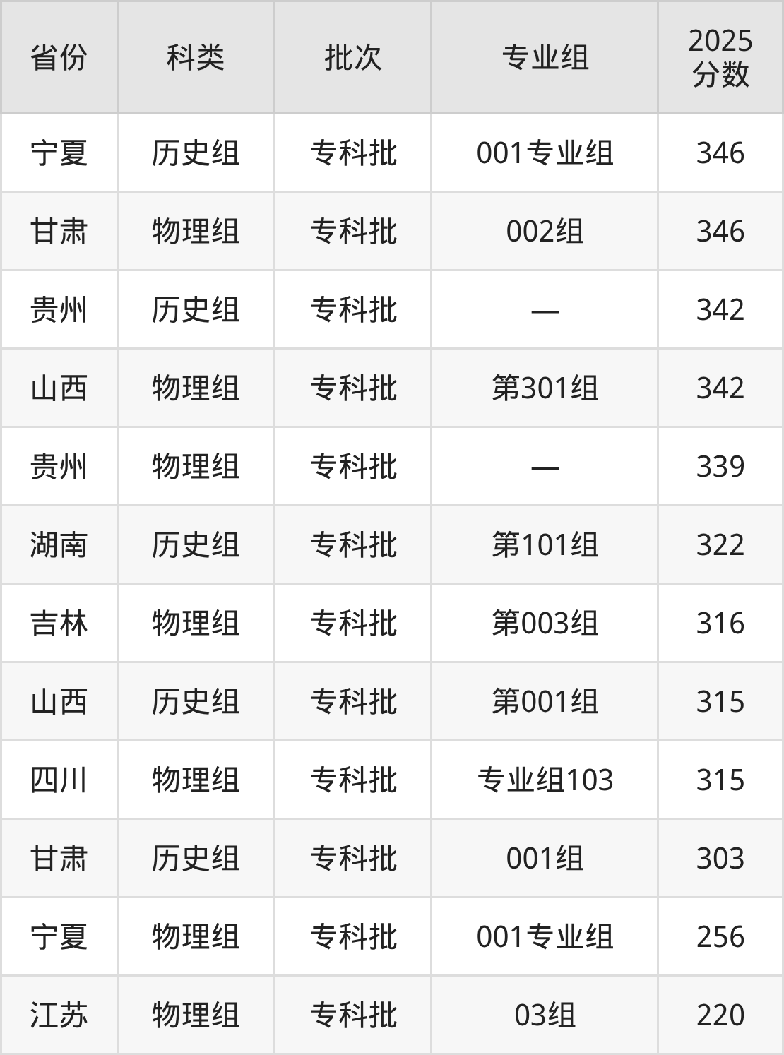 而浙江地区考生的分数门槛最高,2025年常州纺织服装职业技术学院在浙江招生最低分为437分,考生至少要超二段线169分才有可能被录取。