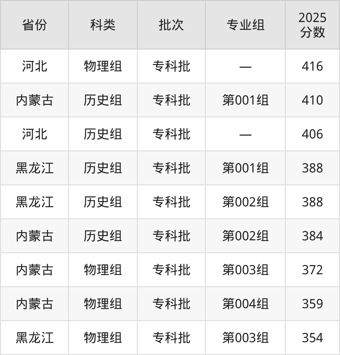 而河北地区物理组考生的分数门槛最高,2025年北京劳动保障职业学院在河北招生最低分为416分,考生至少要超专科线216分才有可能被录取。