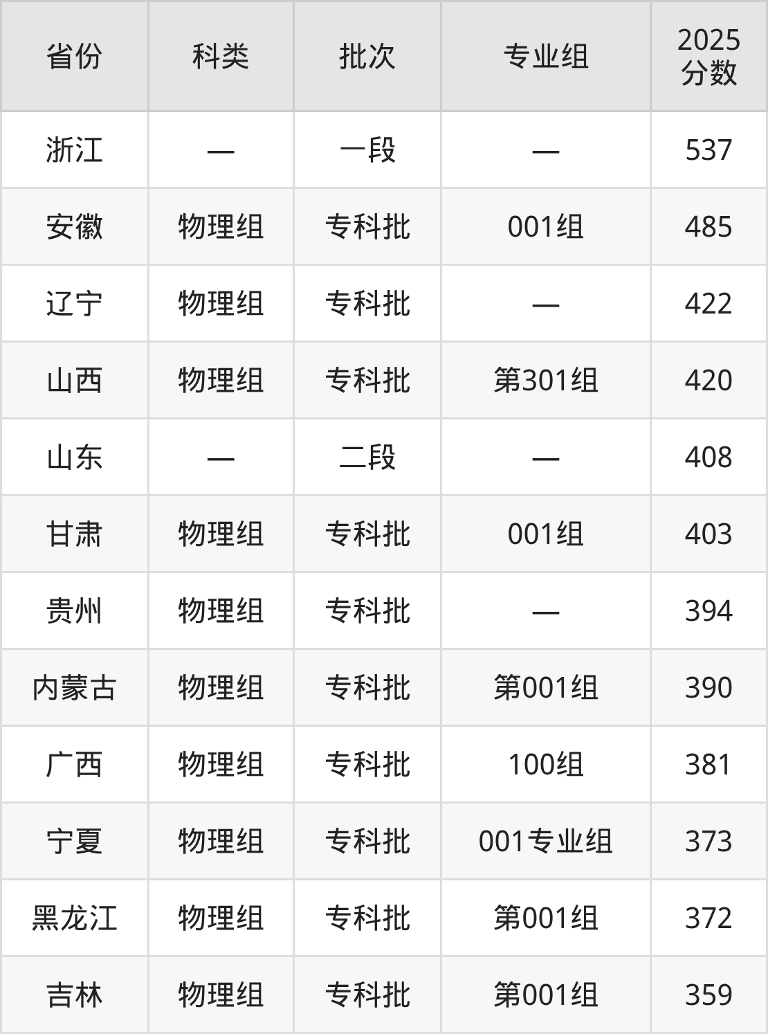 而浙江地区考生的分数门槛最高,2025年山东医学高等专科学校在浙江招生最低分为537分,考生至少要超一段线47分才有可能被录取。
