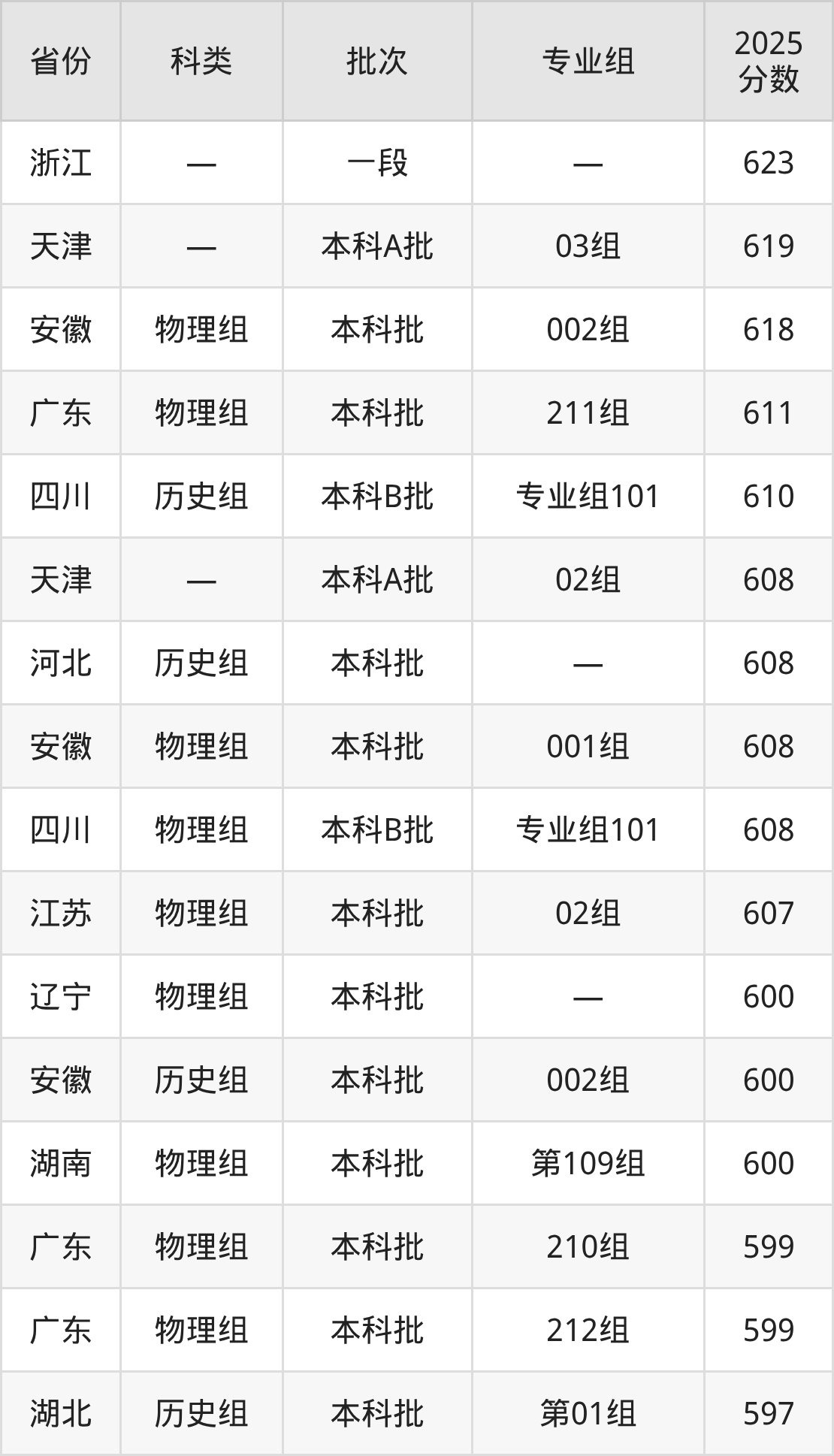 而浙江地区考生的分数门槛最高,2025年首都师范大学在浙江招生最低分为623分,考生至少要超一段线133分才有可能被录取。