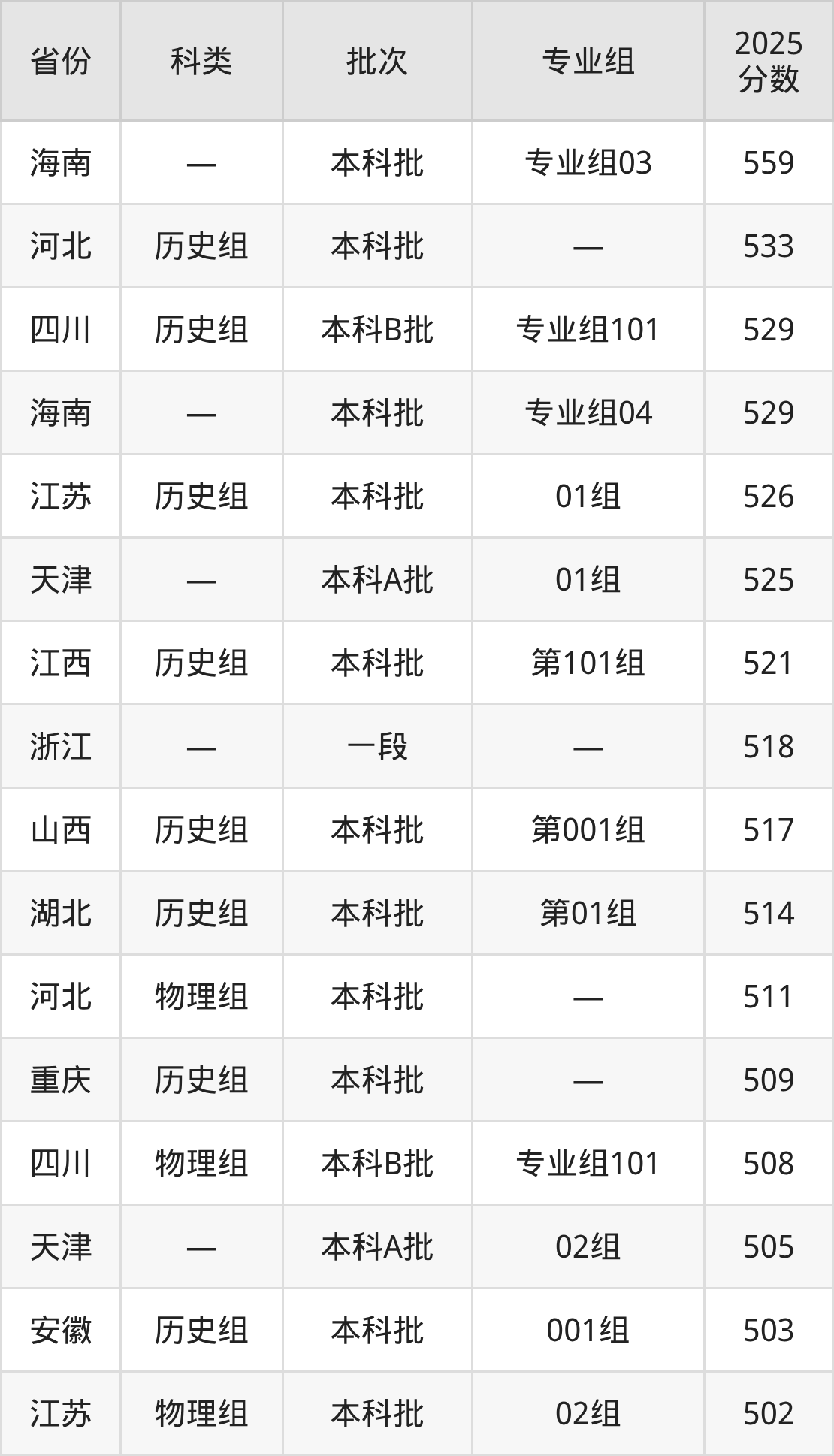 而海南地区考生的分数门槛最高,2025年宝鸡文理学院专业组03在海南招生最低分为559分,考生至少要超本科线79分才有可能被录取。