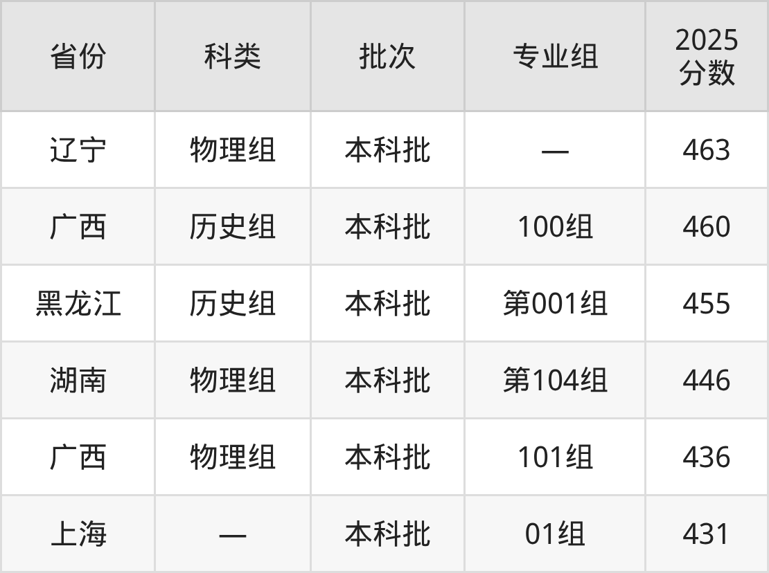 宝鸡文理学院在省外招生最低录取分数线为431分,不同地区、不同科类的考生最低分有差异。